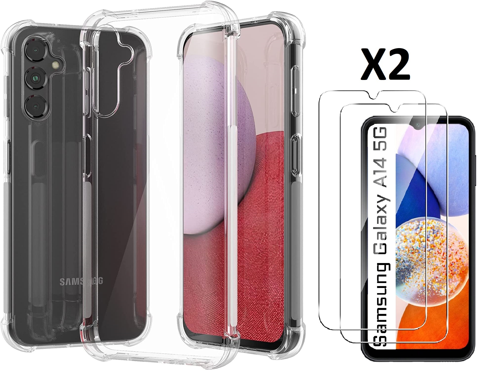 Hoesje Geschikt Voor Samsung Galaxy A14 5G/4G Hoesje Shock Proof siliconen Case Met 2x Screenprotector