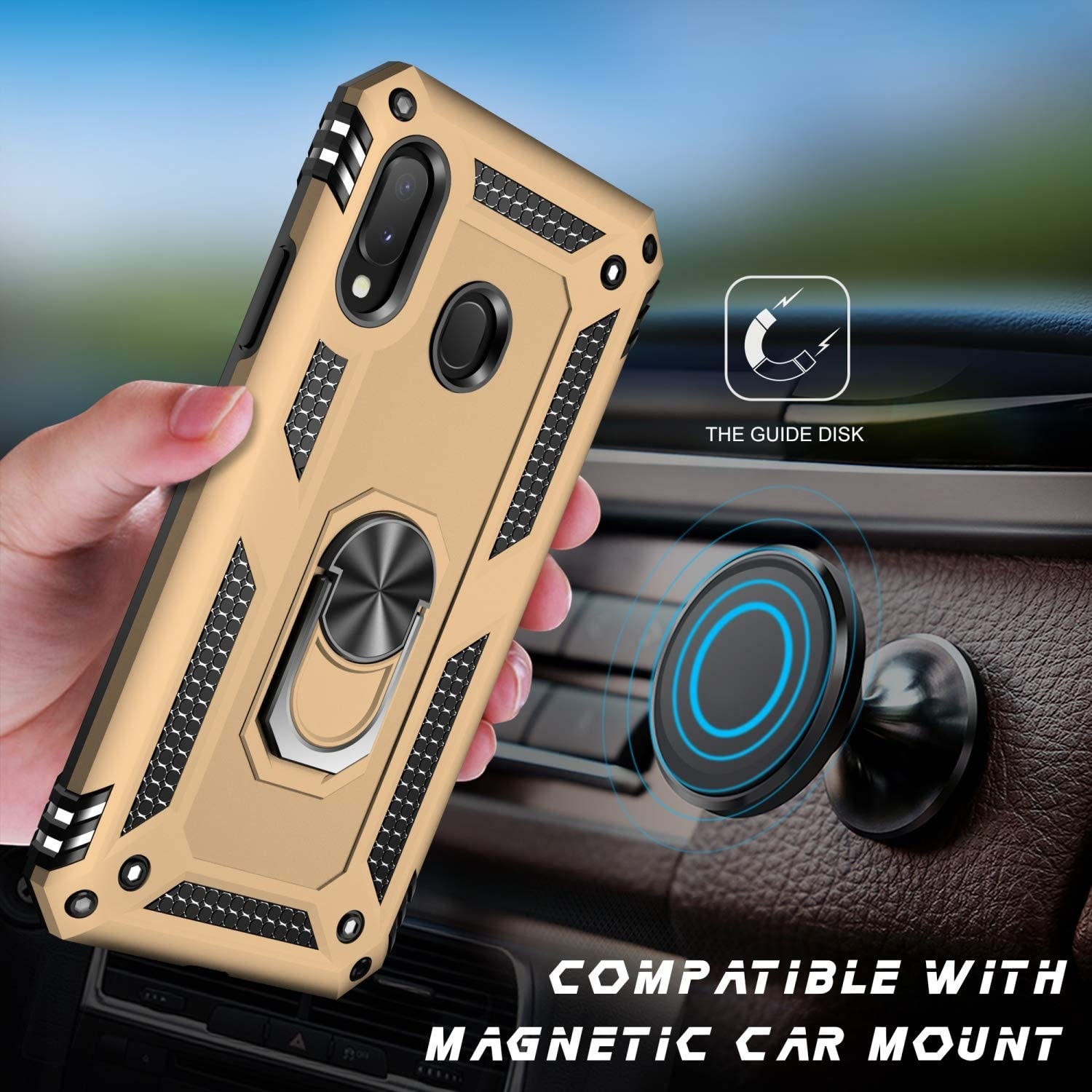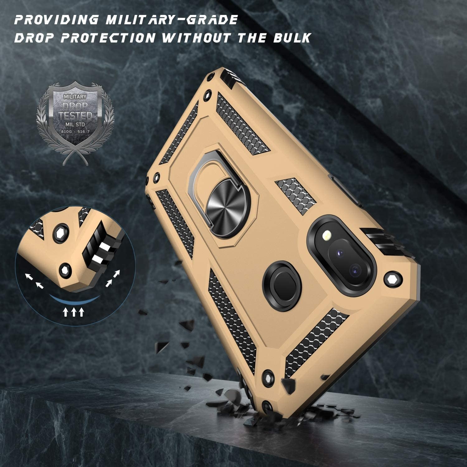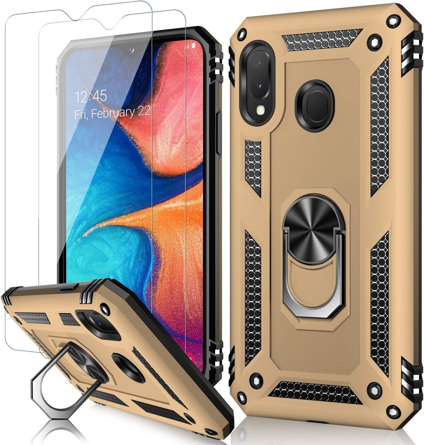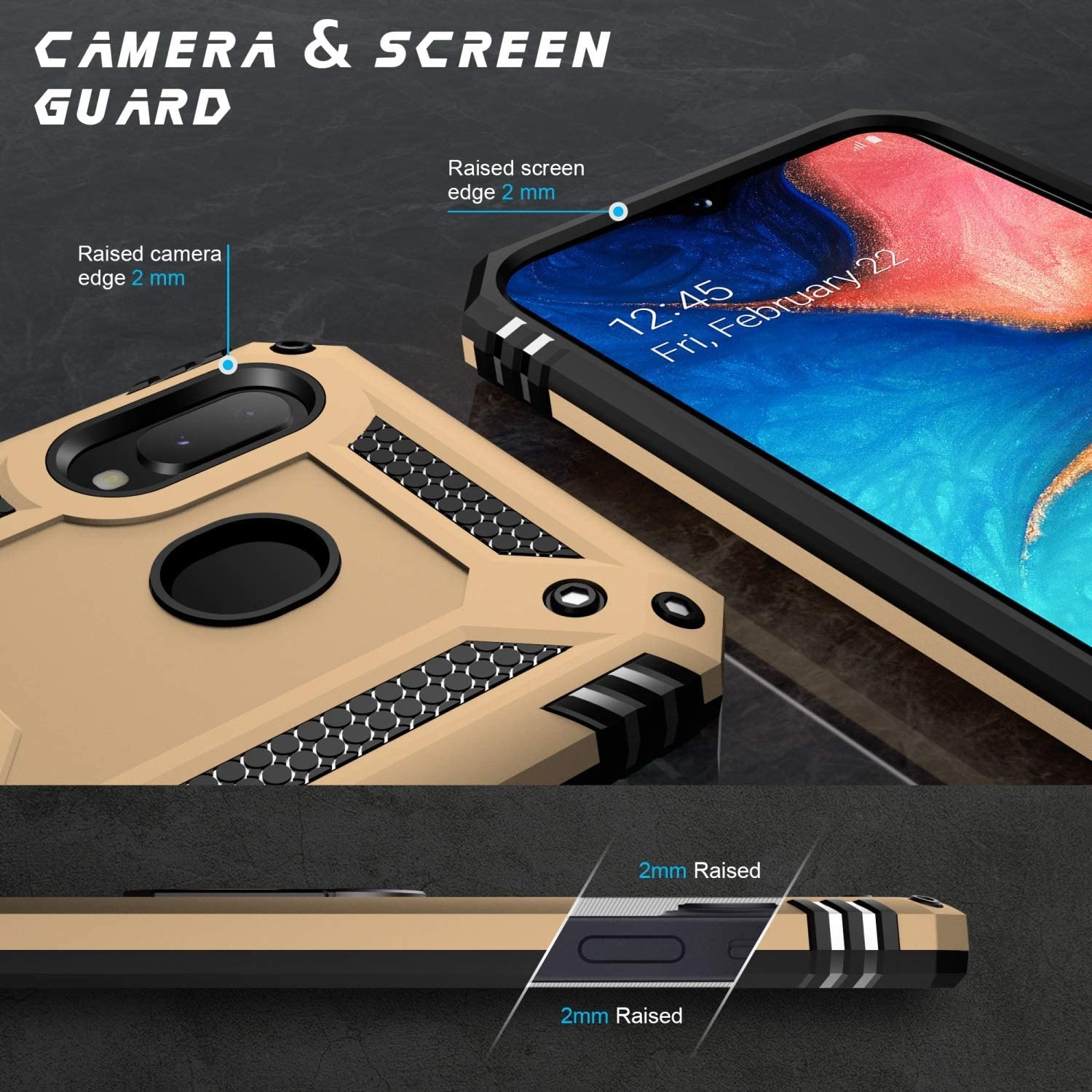 Hoesje Geschikt Voor Samsung Galaxy A20E Hoesje kickstand Armor case Goud Met screenprotector 2 pack