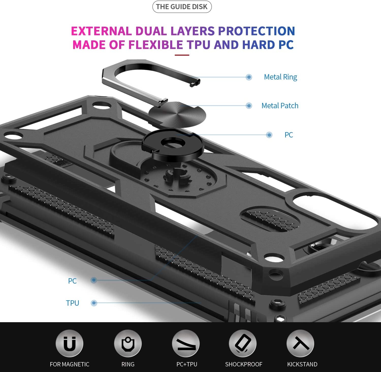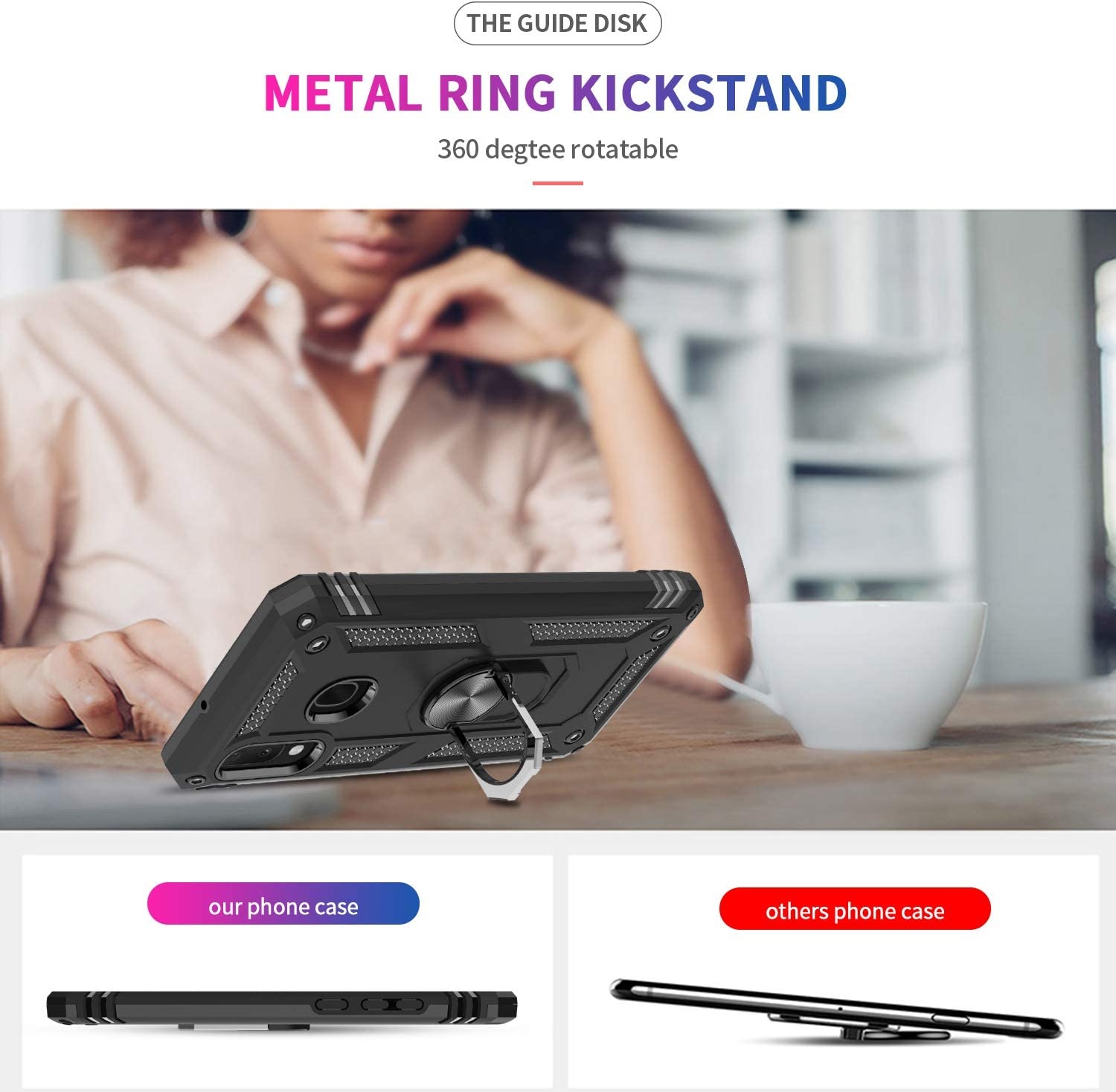 Samsung Galaxy A20E Armor TPU Back Cover Met Metalen Ring houder & standaard. Bescherming tegen stof, stoot & vuil en makkelijk in gebruik. De Samsung Galaxy A20E ring houder kan je op verschillende manieren gebruiken, bijvoorbeeld als een handige standaard om je favoriete filmpjes en video's te bekijken.