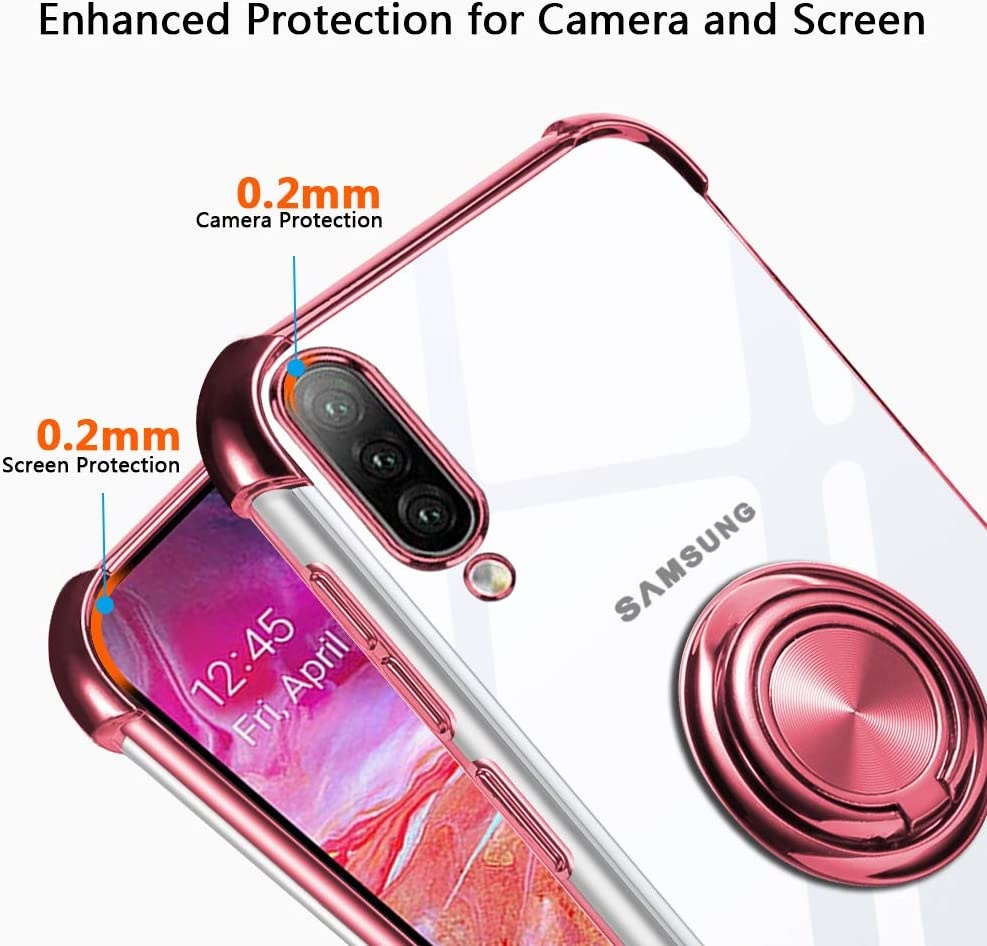 Hoesje Geschikt Voor Samsung Galaxy A20e hoesje silicone met ringhouder Back Cover Case - Transparant/Rosegoud
