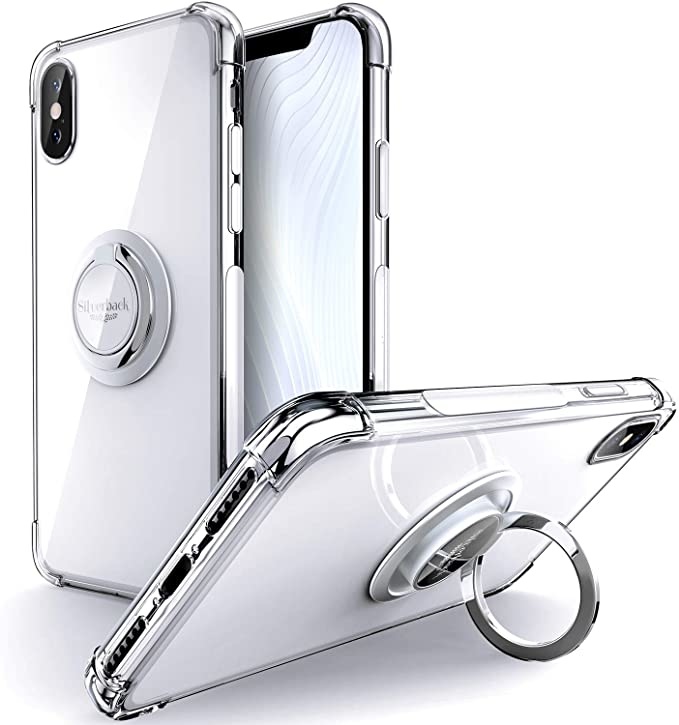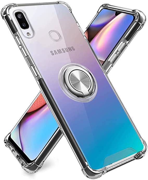 Hoesje Geschikt Voor Samsung Galaxy A20e hoesje silicone met ringhouder Back Cover Case - Transparant/Zilver