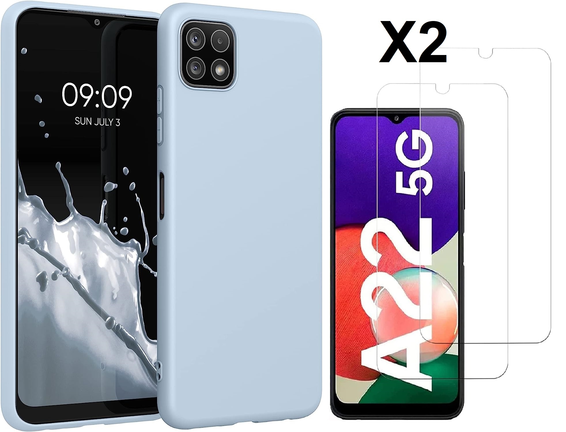 Hoesje Geschikt Voor Samsung Galaxy A22 5G Hoesje siliconen Licht Blauw zacht siliconen hoesje TPU backcover - Met Screenprotector - 2 stuks