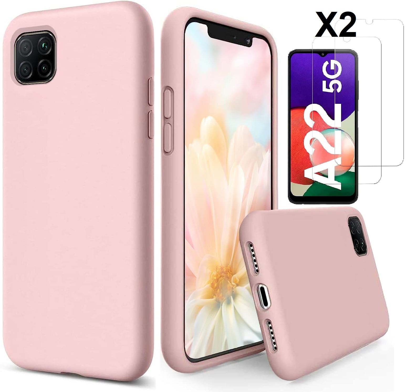 Hoesje Geschikt Voor Samsung Galaxy A22 5G Hoesje siliconen Licht Roze zacht siliconen hoesje TPU backcover - Met Screenprotector - 2 stuks