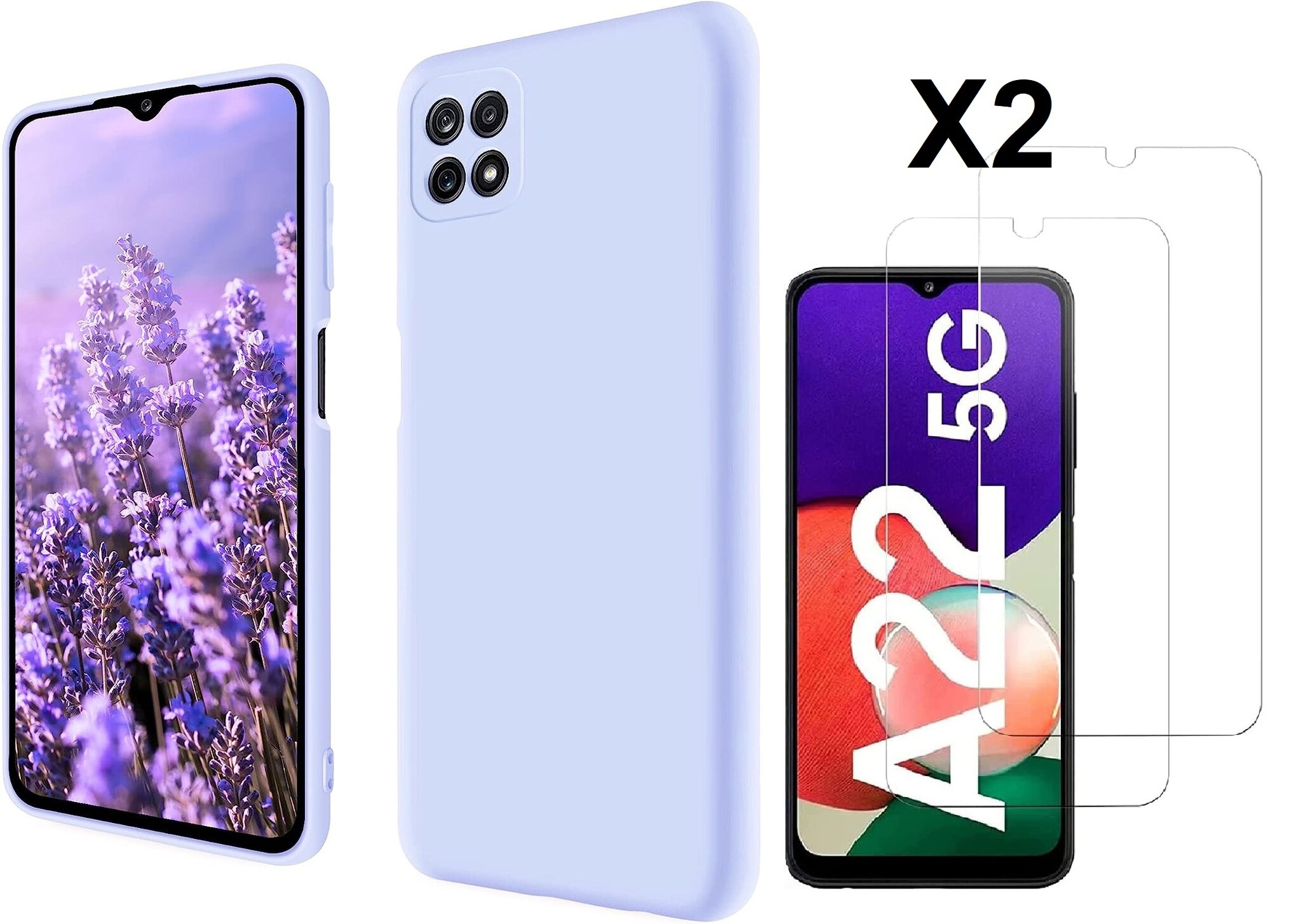 Hoesje Geschikt Voor Samsung Galaxy A22 5G Hoesje siliconen Lila zacht siliconen hoesje TPU backcover - Met Screenprotector - 2 stuks