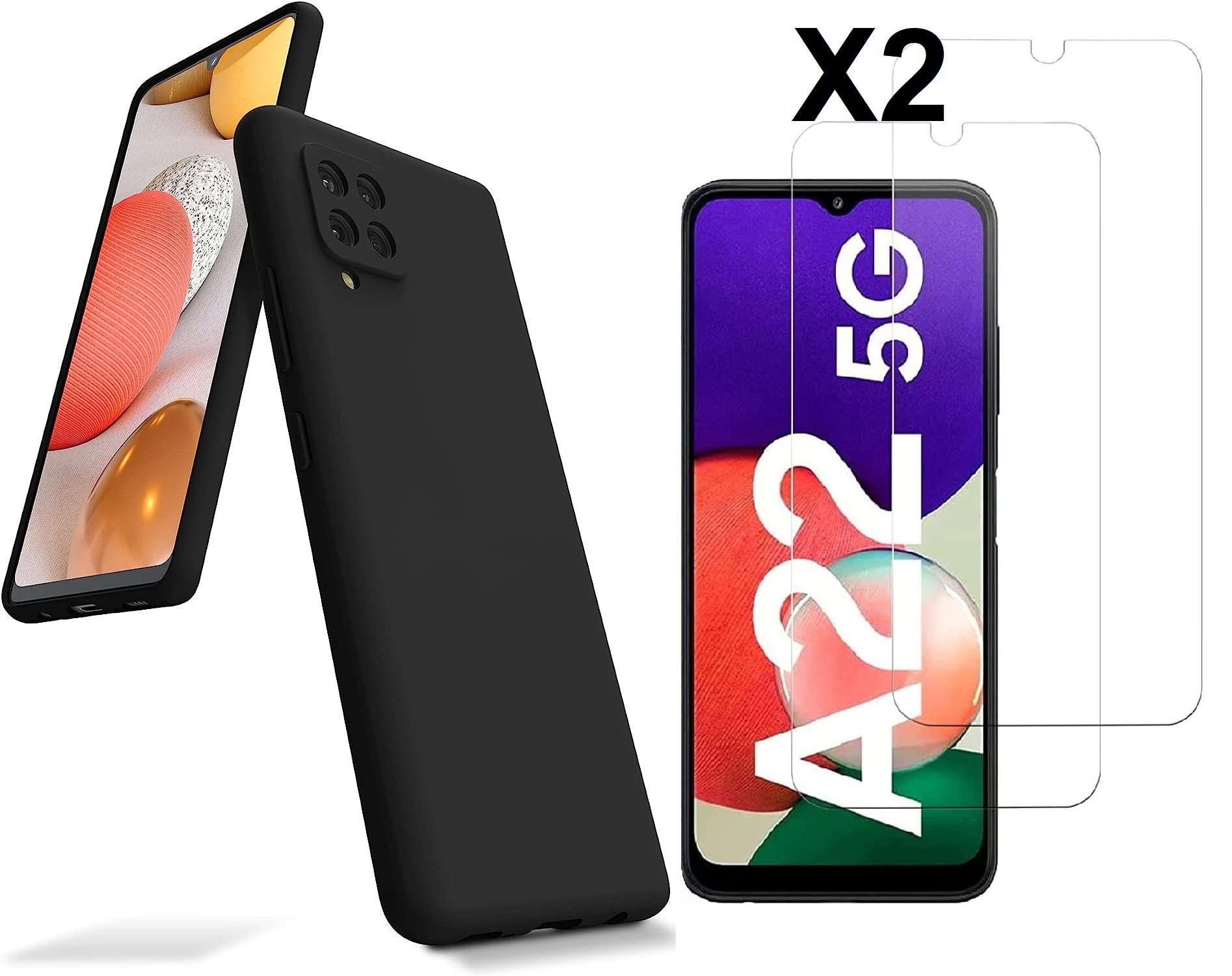 Hoesje Geschikt Voor Samsung Galaxy A22 5G Hoesje siliconen Zwart zacht siliconen hoesje TPU backcover - Met Screenprotector - 2 stuks