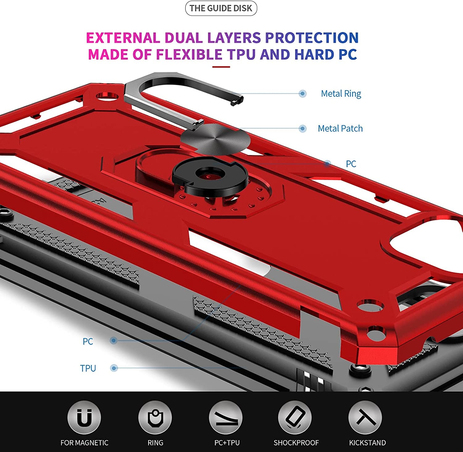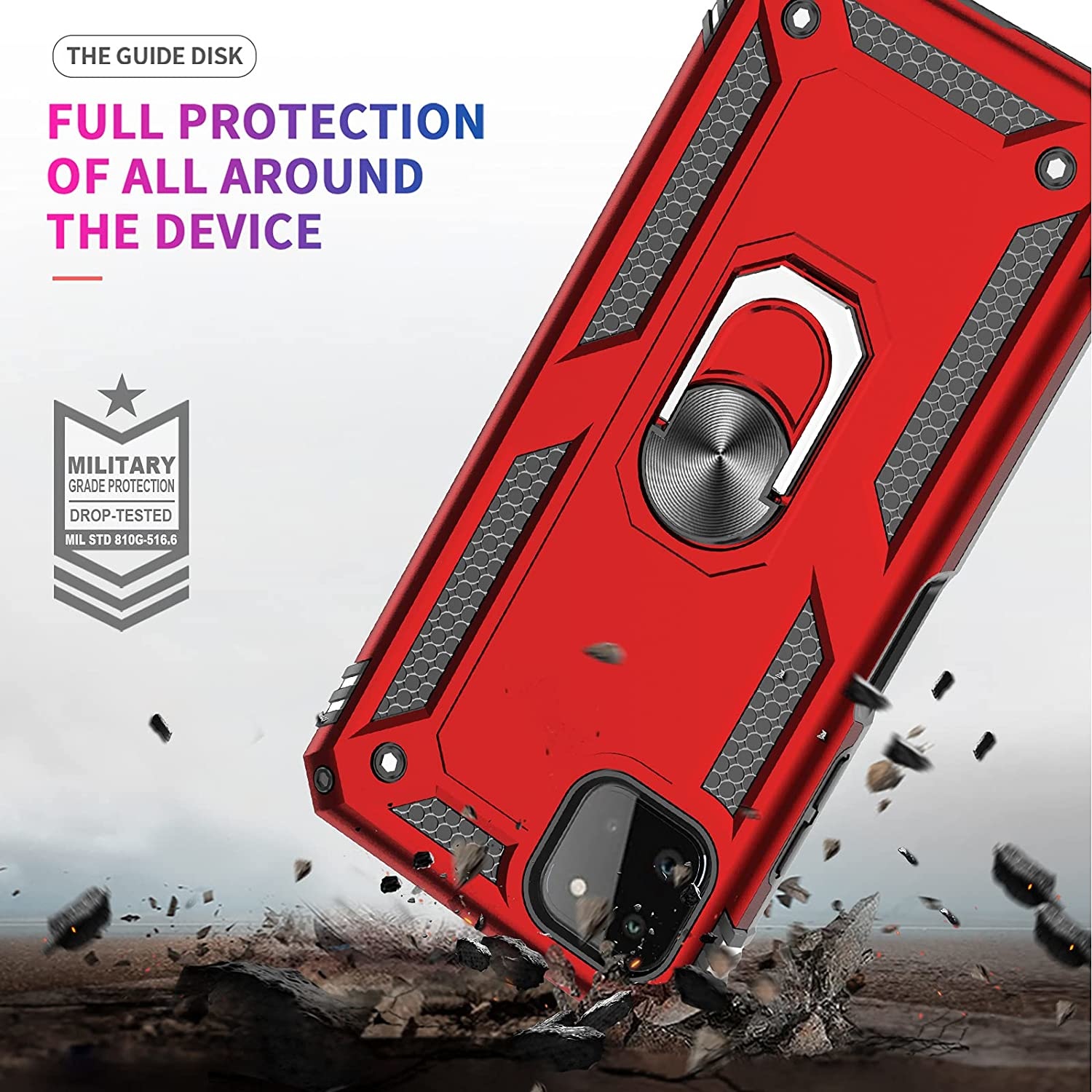 Hoesje Geschikt Voor Samsung Galaxy A22 Hoesje Anti-Shock Hybrid Armor hoesje Rood - Hoesje Geschikt Voor Samsung Galaxy A22 5G kickstand Ring houder TPU backcover hoesje - met screenprotector Galaxy A22 5G - 2 pack