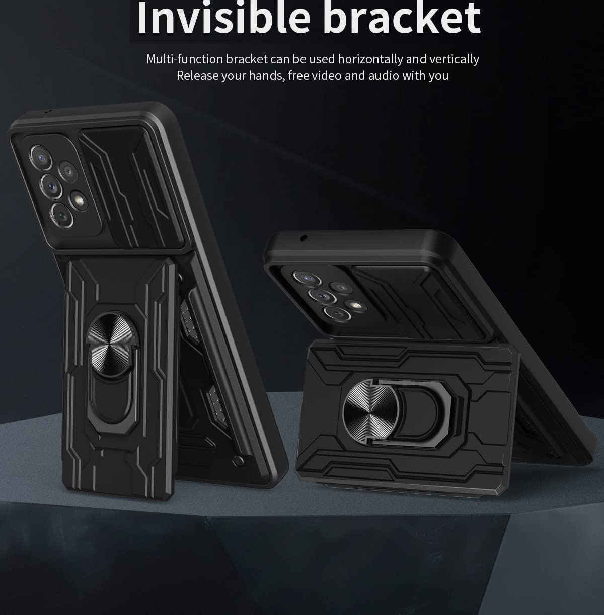 Dit unieke Samsung Galaxy A22 5G hoesje met kickstand camera lenz dekking en kaarthouder is de nieuwste desgin in de markt, het metaalgeval past uw telefoon met hoge precisieknipsels en de naald kijkt en voelt groot in degenen hand.