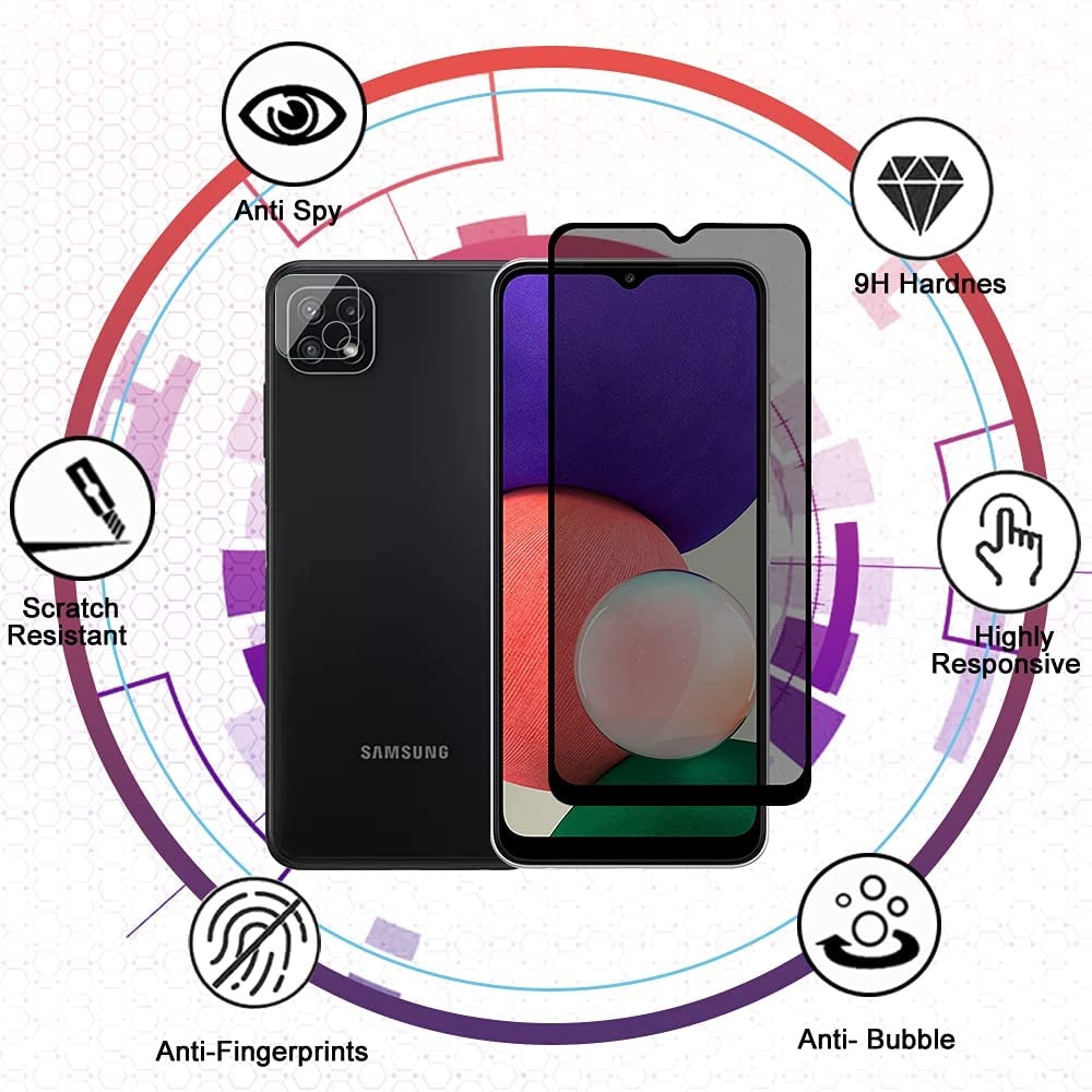 Samsung Galaxy A22 5G Privacy Glazen Screen protector/ Anti Spy Tempered Glass - Schermbescherming tegen meelezers of meekijken op je smartphone. Lees meer