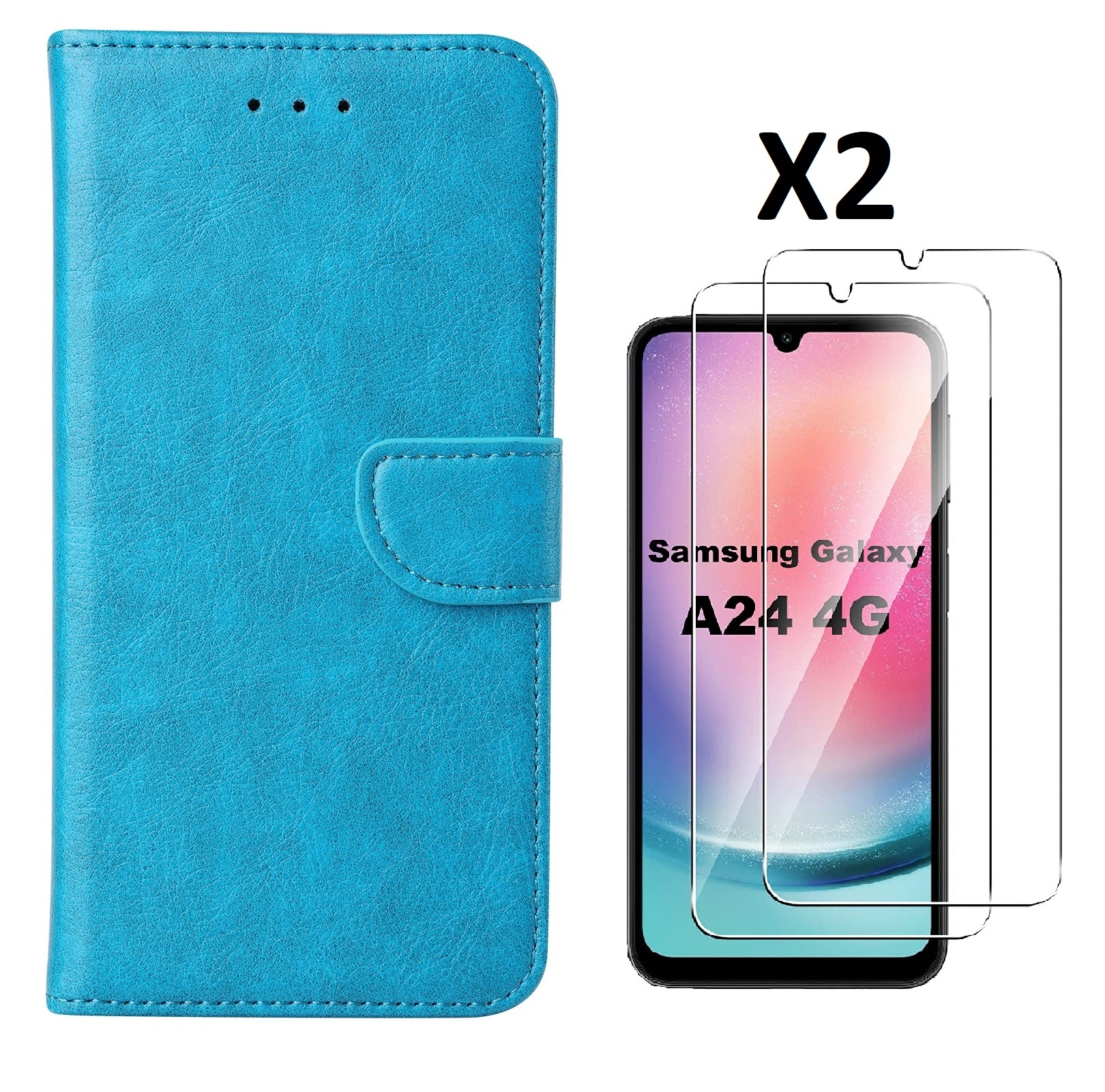 Hoesje Geschikt Voor Samsung Galaxy A24 hoesje bookcase portemonnee Met 2x screenprotector / Beschermglas - Blauw