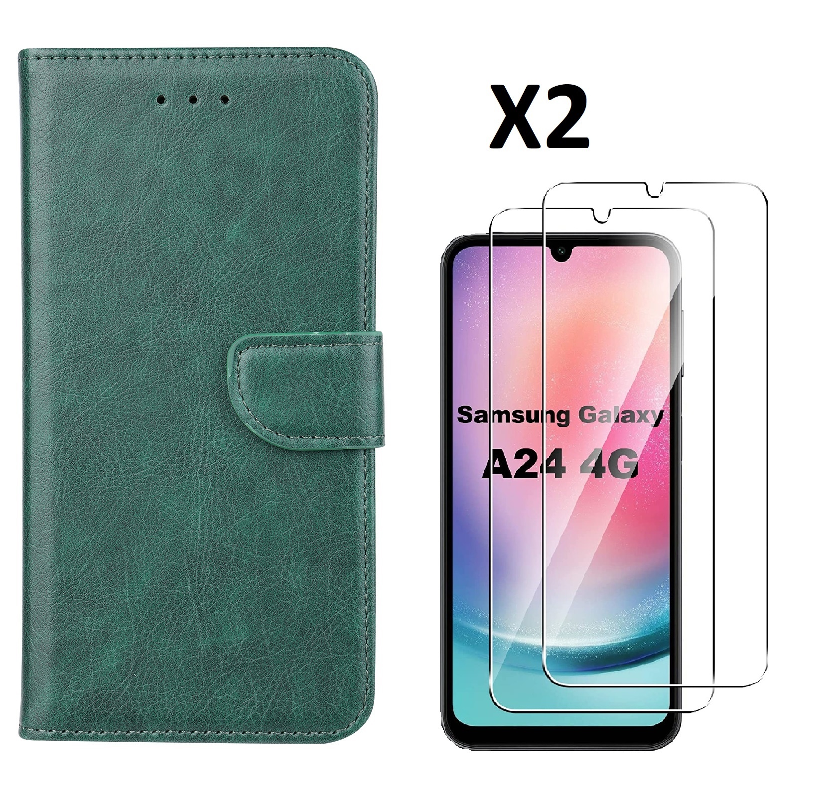 Hoesje Geschikt Voor Samsung Galaxy A24 hoesje bookcase portemonnee Met 2x screenprotector / Beschermglas - Groen