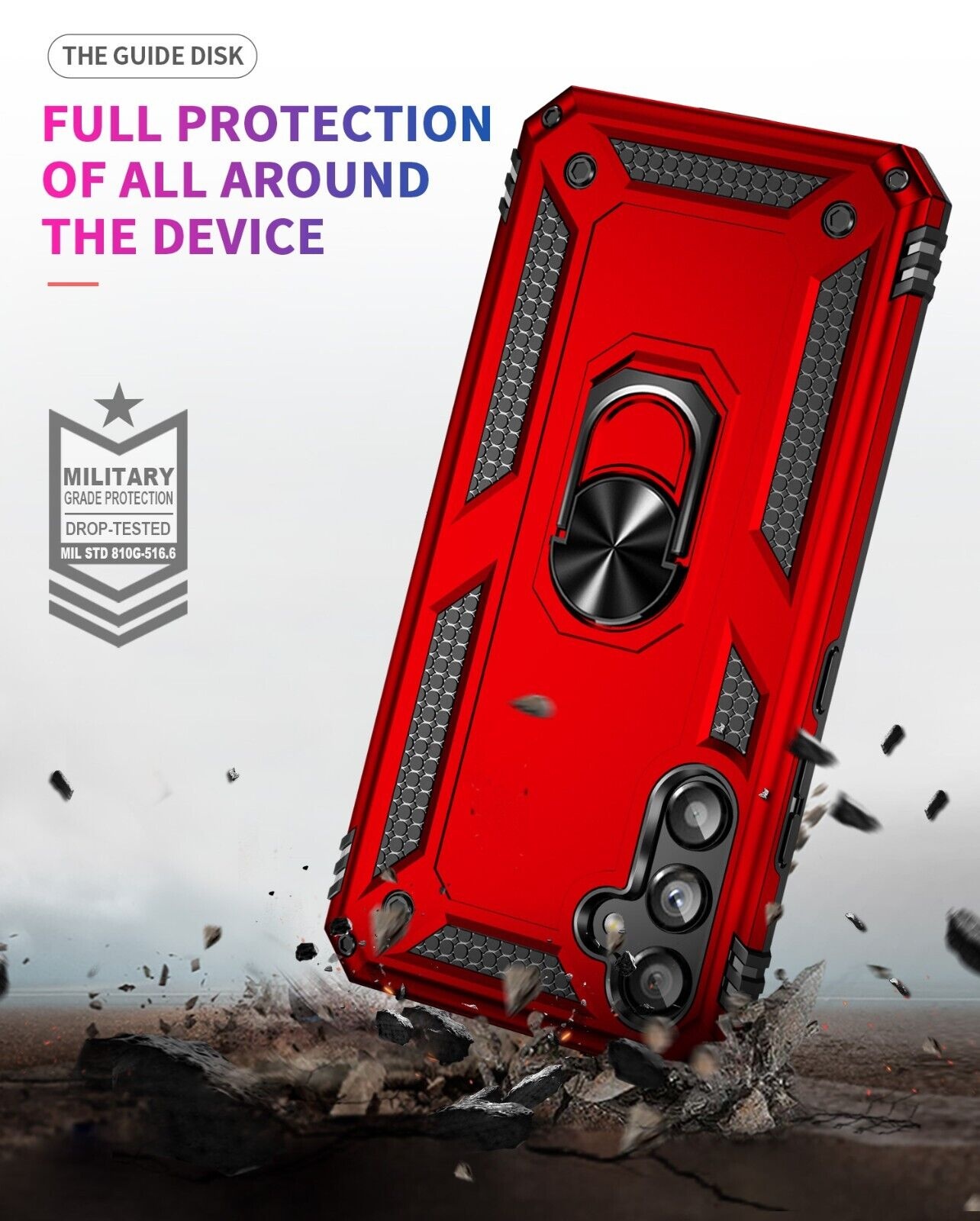 Samsung Galaxy A24 hoesje Armor TPU Back Cover Met Metalen Ring houder & standaard. Bescherming tegen stof, stoot & vuil en makkelijk in gebruik. De Samsung Galaxy A24 4G ring houder hoesje kan je op verschillende manieren gebruiken, bijvoorbeeld als een handige standaard om je favoriete filmpjes en video's te bekijken.