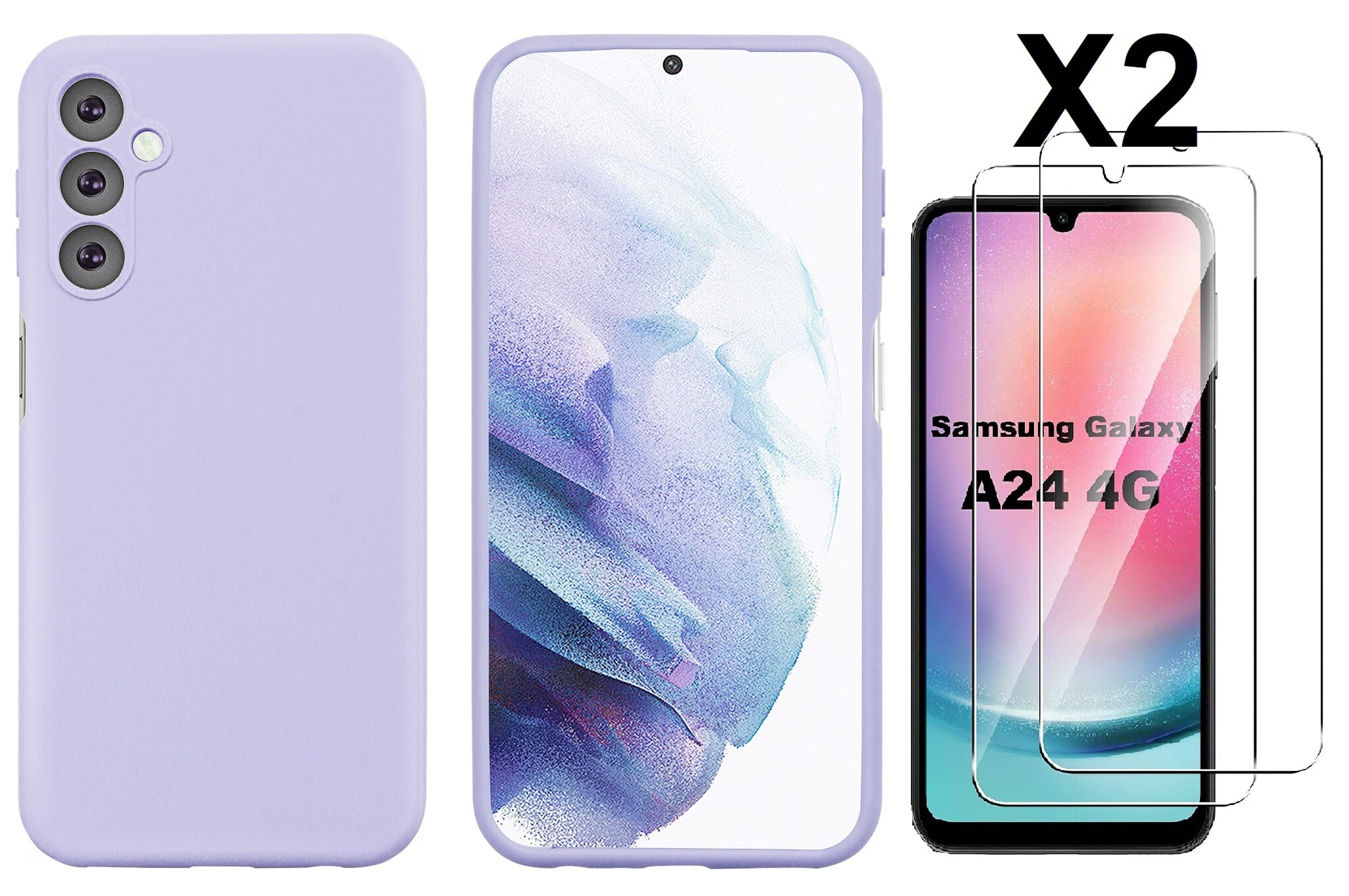 Hoesje Geschikt Voor Samsung Galaxy A24 Hoesje siliconen Lila zacht siliconen hoesje TPU backcover - Met Screenprotector - 2 stuks