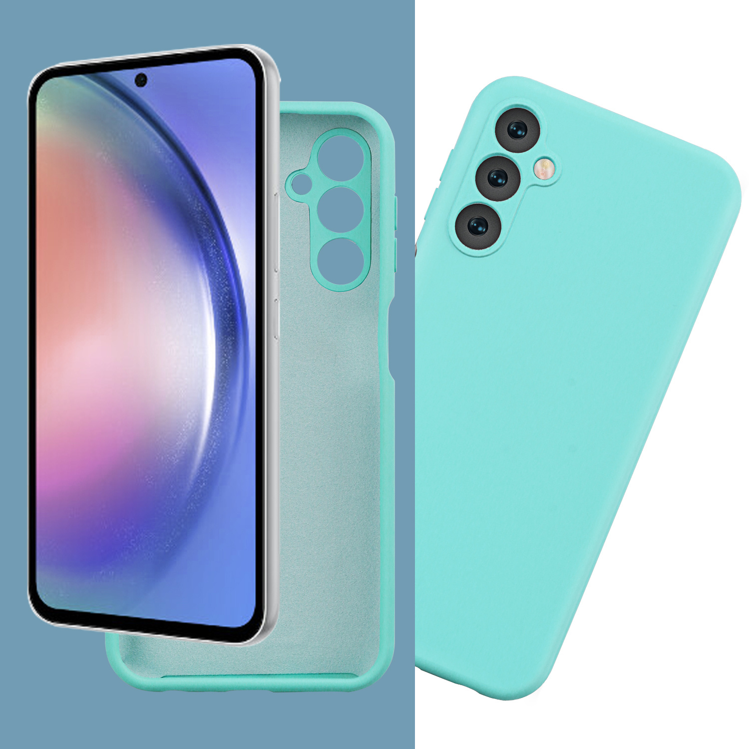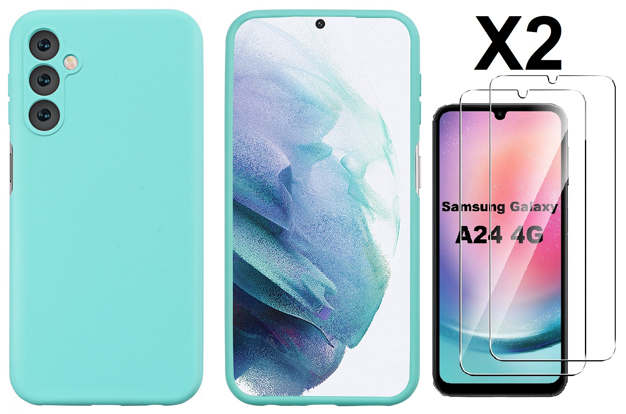 Hoesje Geschikt Voor Samsung Galaxy A24 Hoesje siliconen Mint Groen zacht siliconen hoesje TPU backcover - Met Screenprotector - 2 stuks