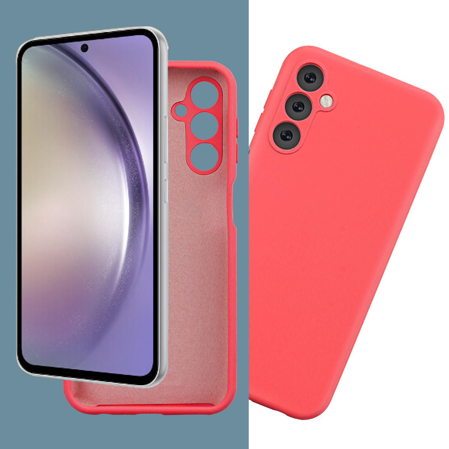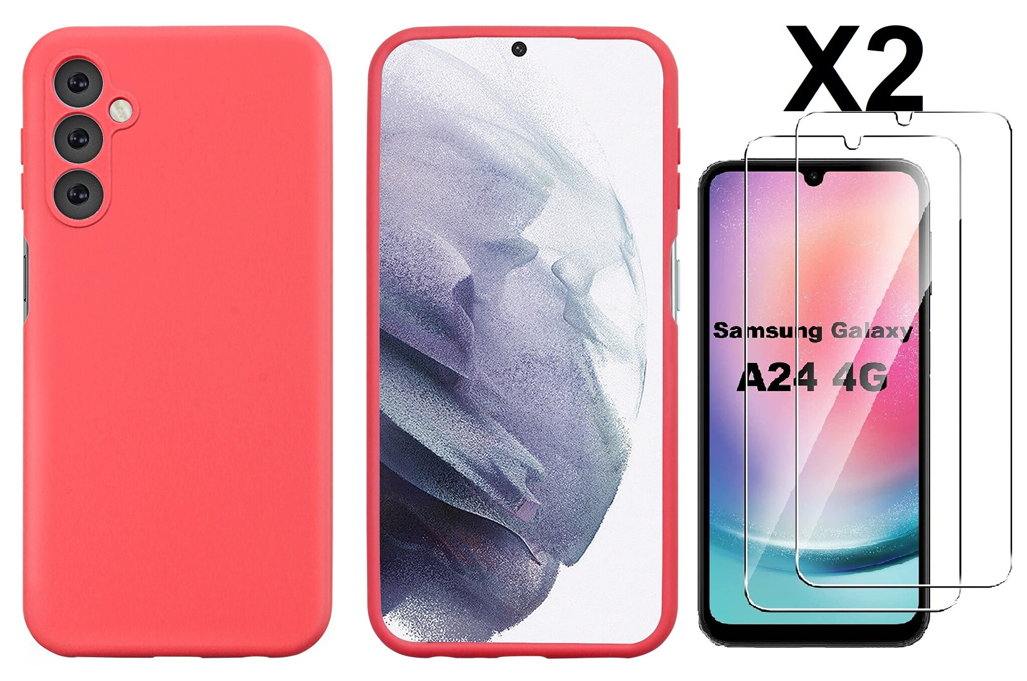 Hoesje Geschikt Voor Samsung Galaxy A24 Hoesje siliconen Rood zacht siliconen hoesje TPU backcover - Met Screenprotector - 2 stuks