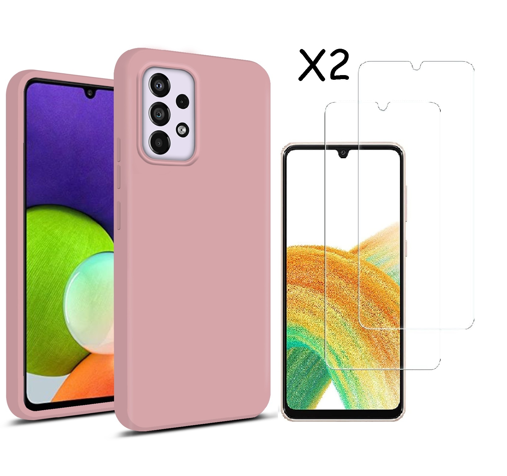Hoesje Geschikt Voor Samsung Galaxy A33 hoesje silicone soft cover Licht roze - Hoesje Geschikt Voor Samsung Galaxy A33 5G Silicone colour hoesje - Galaxy A33 case Liquid Nano Silicone cover - A33 Screenprotector 2 pack
