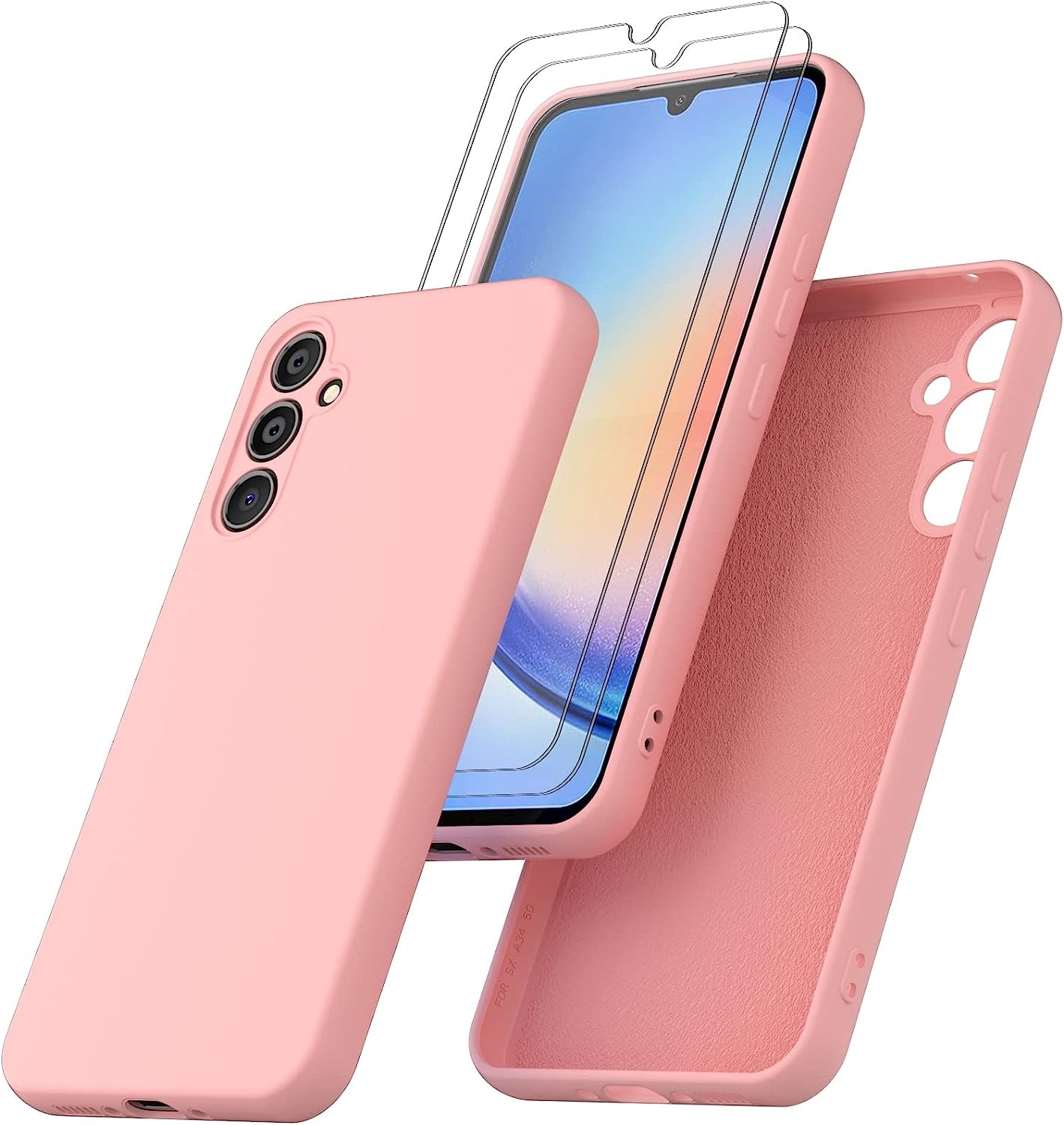 Hoesje Geschikt Voor Samsung Galaxy A34 Hoesje siliconen Licht Roze zacht siliconen hoesje TPU backcover - Met Screenprotector - 2 stuks