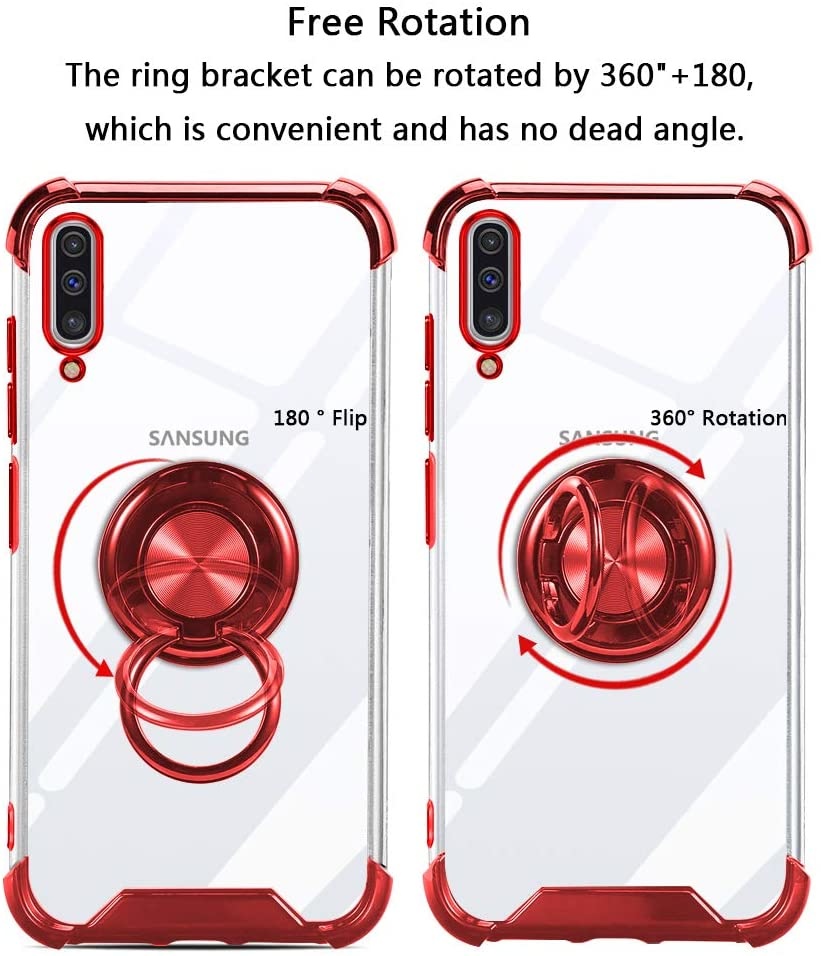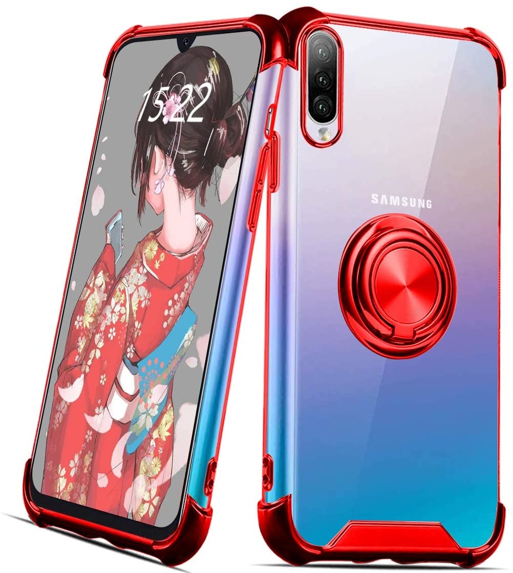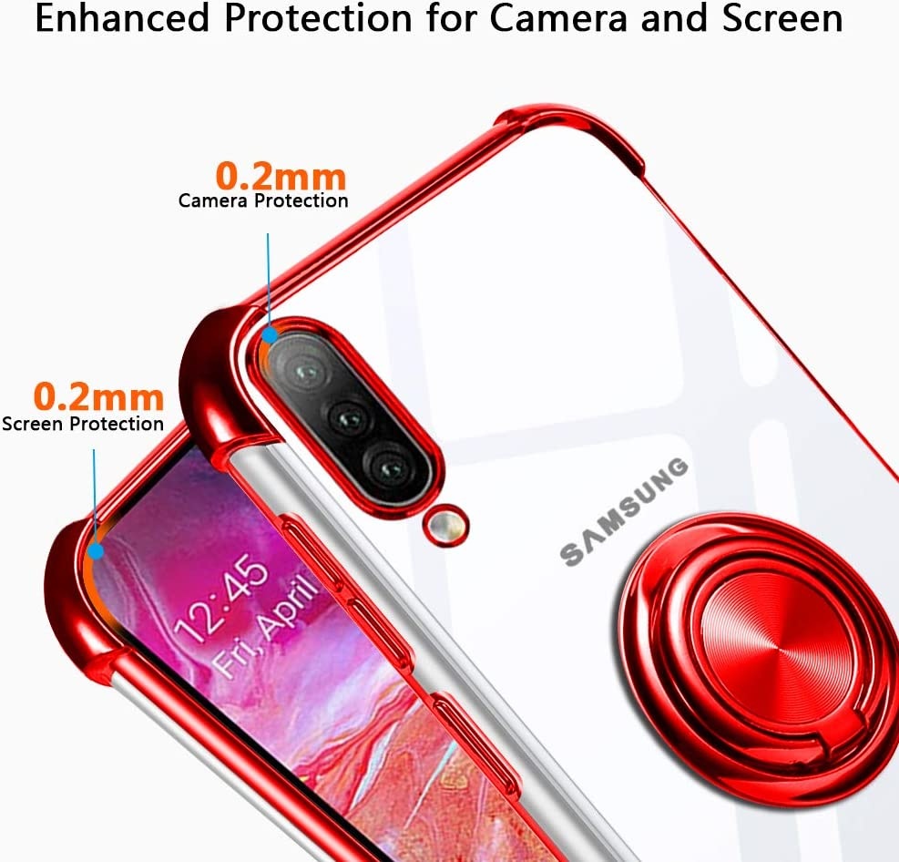 Hoesje Geschikt Voor Samsung Galaxy A20e hoesje silicone met ringhouder Back Cover Case - Transparant/Rood
