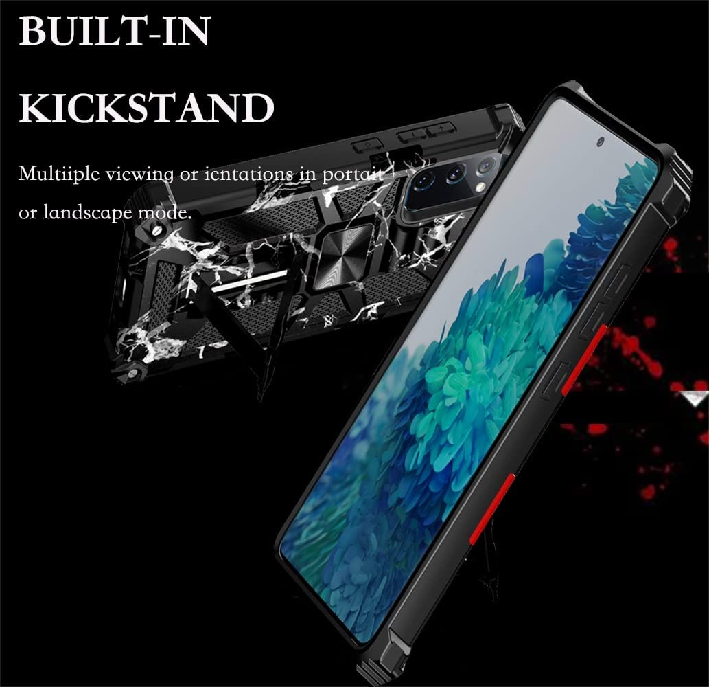 Hoesje Geschikt Voor Samsung Galaxy A52 hoesje rugged extreme backcover met ring houder Camouflage Marmer - Zwart