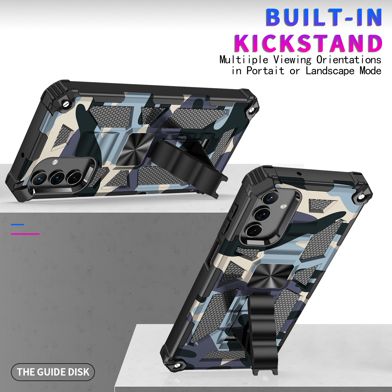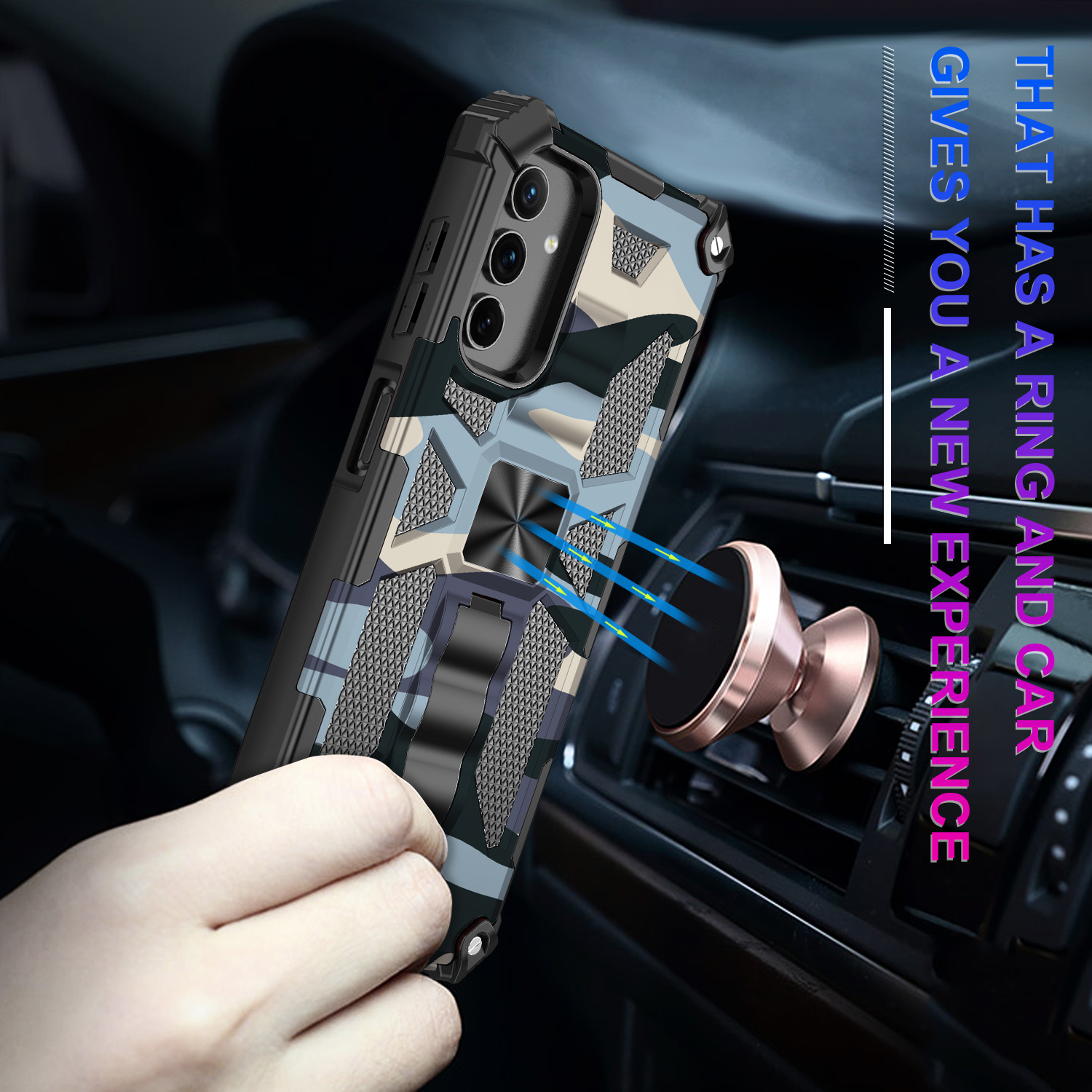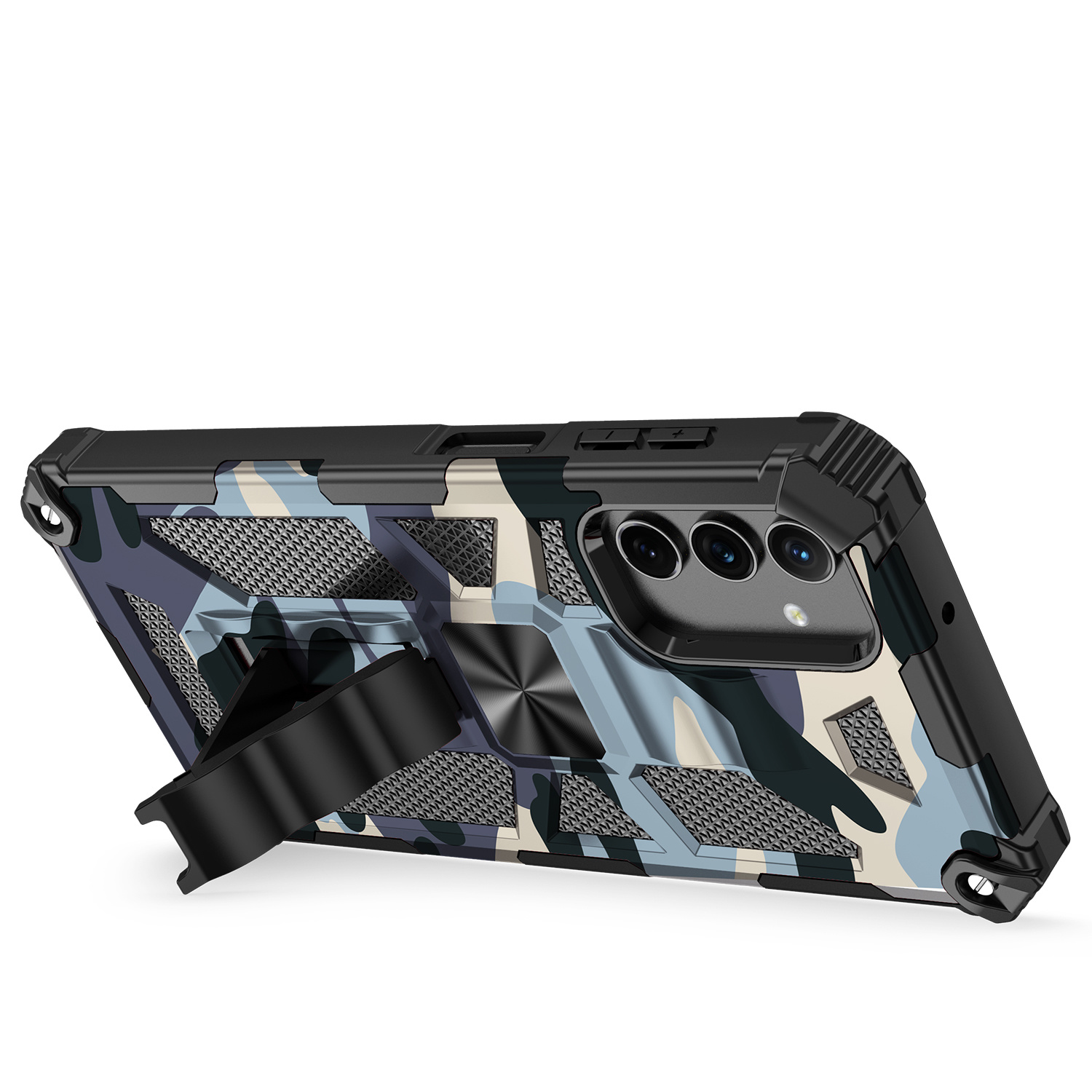 Samsung A52 hoesje backcover armor case met ring houder Camouflage Marine Blauw