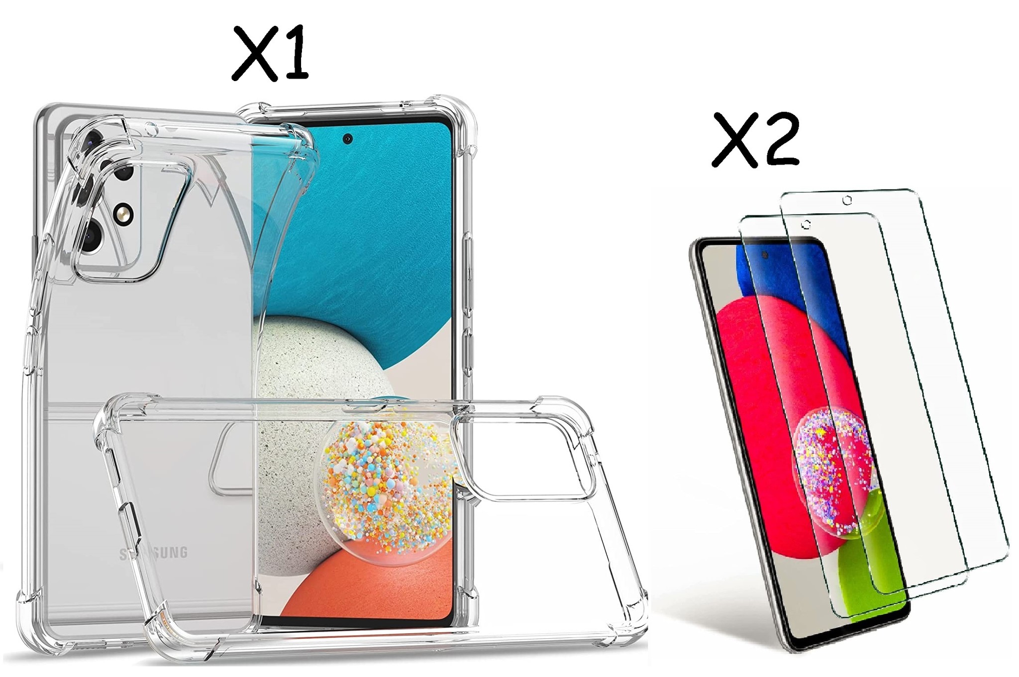 Hoesje Geschikt Voor Samsung Galaxy A53 5G Hoesje transparant Anti Shock silicone Hoesje Geschikt Voor Samsung Galaxy A53 5G hoesje silicone Backcover Hoesje Geschikt Voor Samsung Galaxy A53 Screenprotector Glazen 2 pack