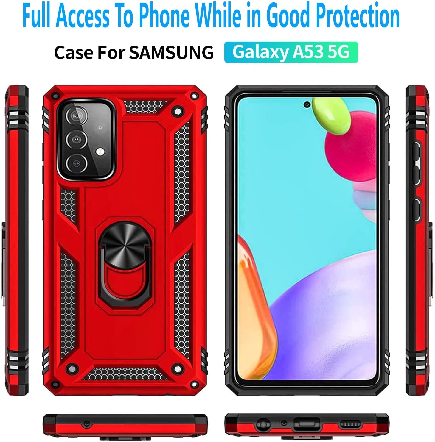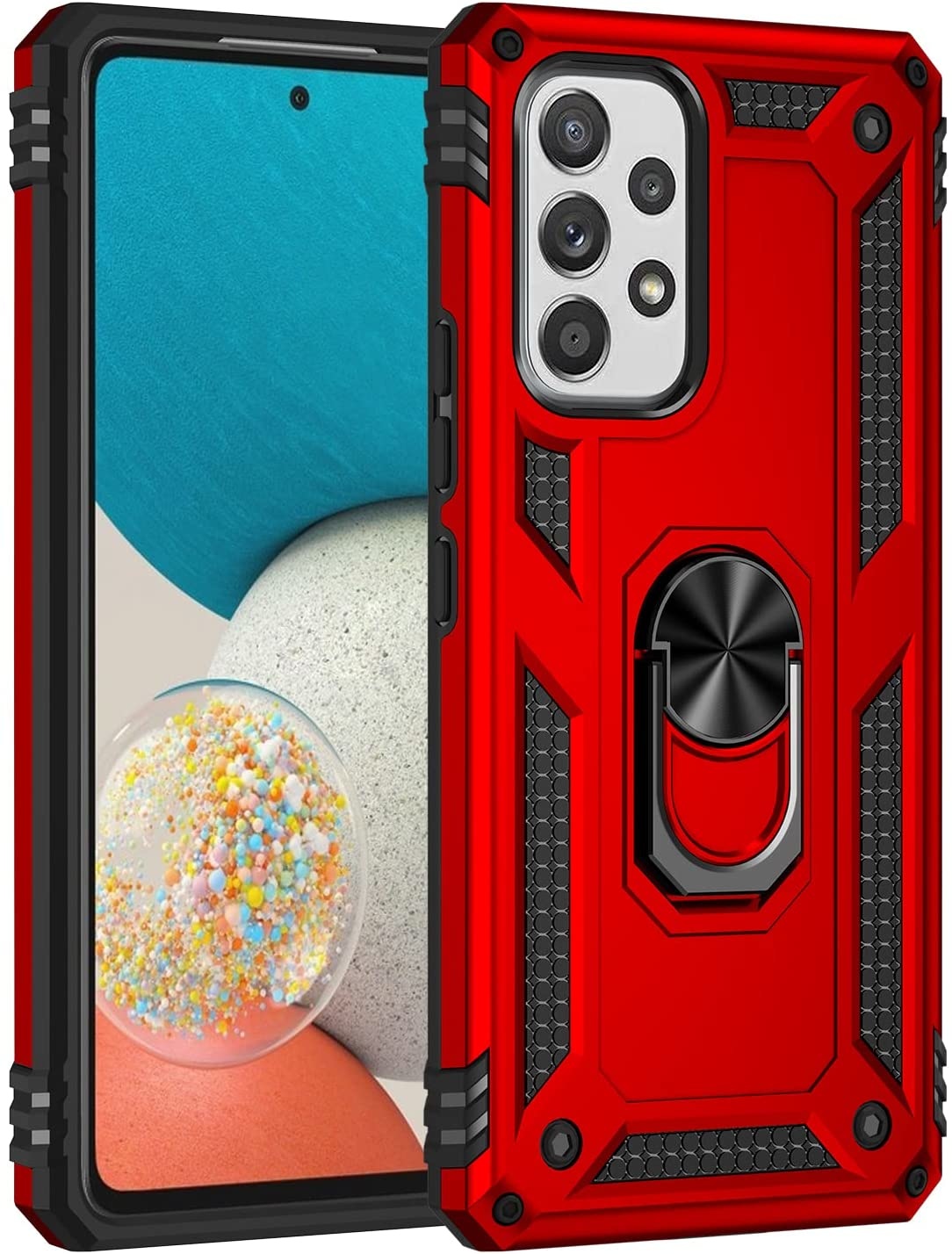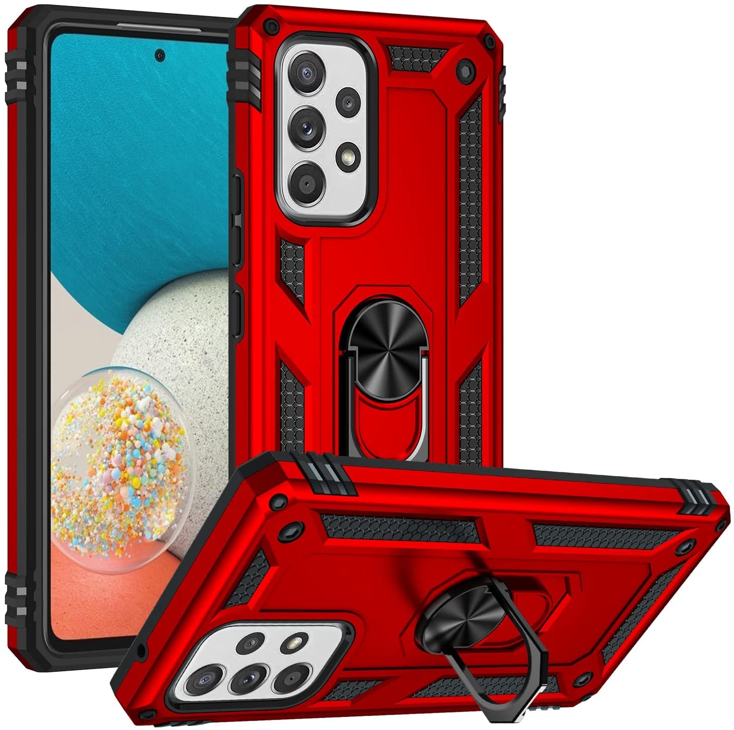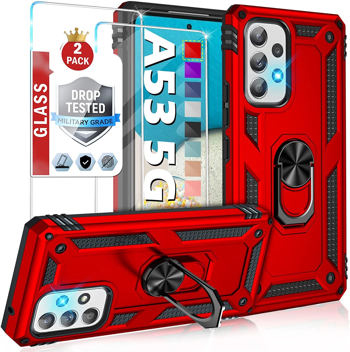 Hoesje Geschikt Voor Samsung Galaxy A53 Hoesje Anti-Shock Hybrid Armor hoesje Rood - Hoesje Geschikt Voor Samsung Galaxy A53 5G kickstand Ring houder TPU backcover hoesje - met screenprotector Galaxy A53 5G - 2 pack