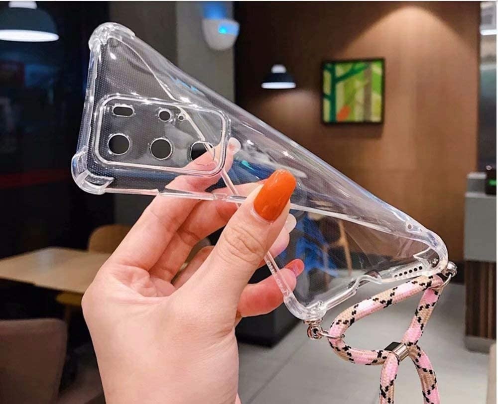 De ketting heeft schone, elegante koorduiteinden gemaakt van messing materiaal. De Transparant Shock Proof hoesje met TPU rand, voorzien van de benodigde uitsparingen voor knoppen camera en toegangspoorten. Transparant materiaal. Een combinatie van flexibele, bescherming en verbeterde schok bestendigheid Perfect om je handen vrij te houden terwijl je andere dingen doet.