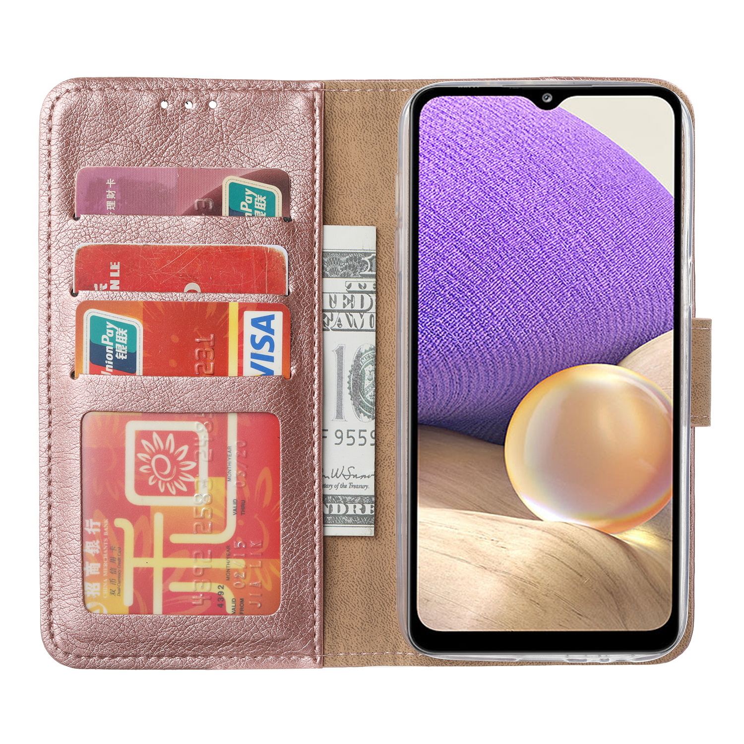 Hoesje Geschikt Voor Samsung Galaxy A73 hoesje bookcase Rose Goud - Hoesje Geschikt Voor Samsung Galaxy A73 wallet case portemonnee hoesje - A73 5G Hoes met Pasjeshouder cover