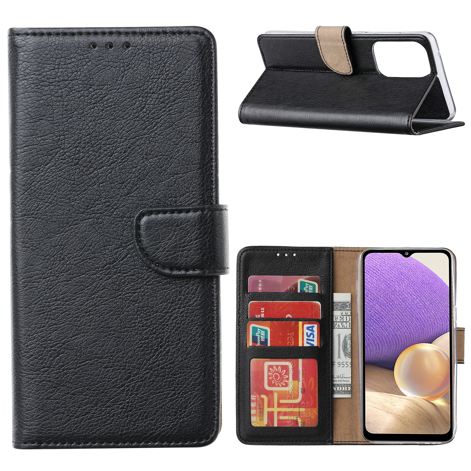 Hoesje Geschikt Voor Samsung Galaxy A73 hoesje bookcase Zwart - Hoesje Geschikt Voor Samsung Galaxy A73 wallet case portemonnee hoesje - A73 5G Hoes met Pasjeshouder cover