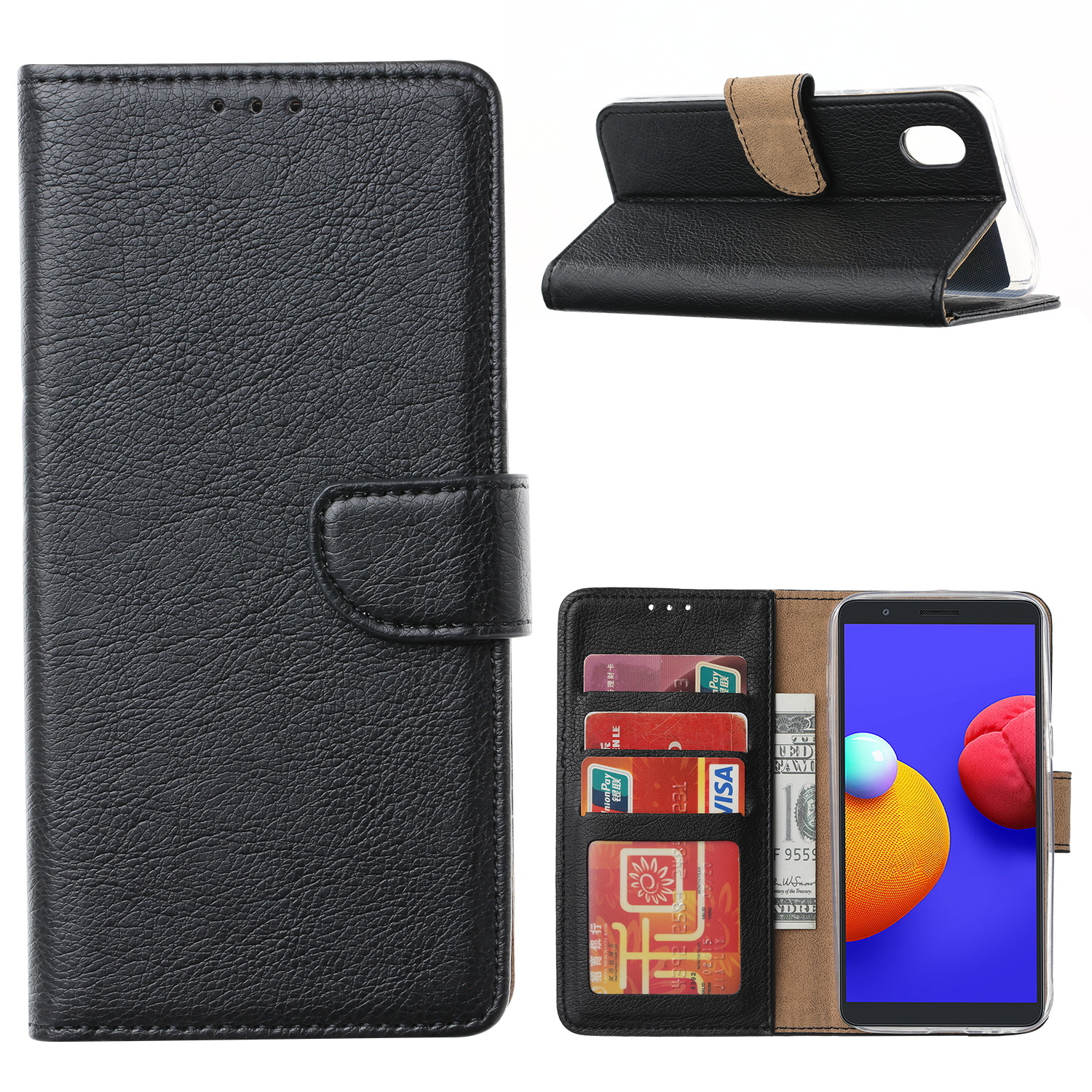 Hoesje Geschikt Voor Samsung Galaxy A01 Core Hoesje book case met Pasjeshouder - Zwart