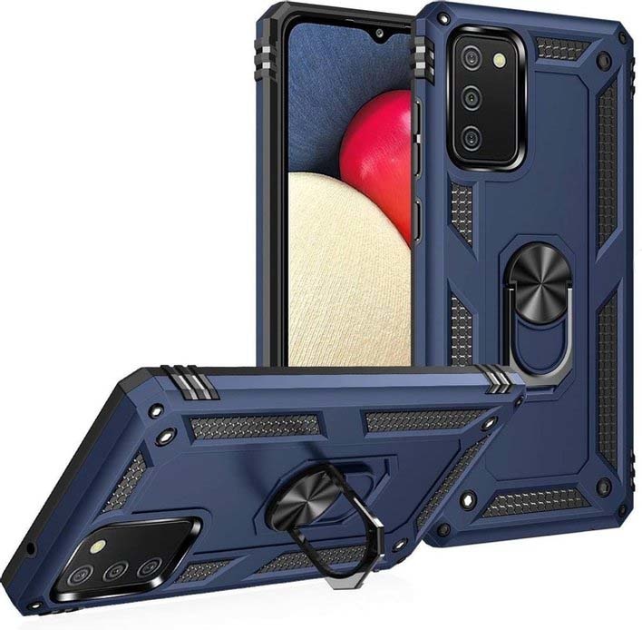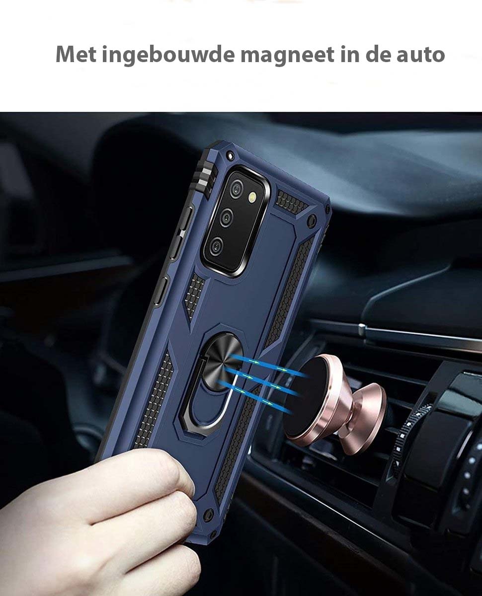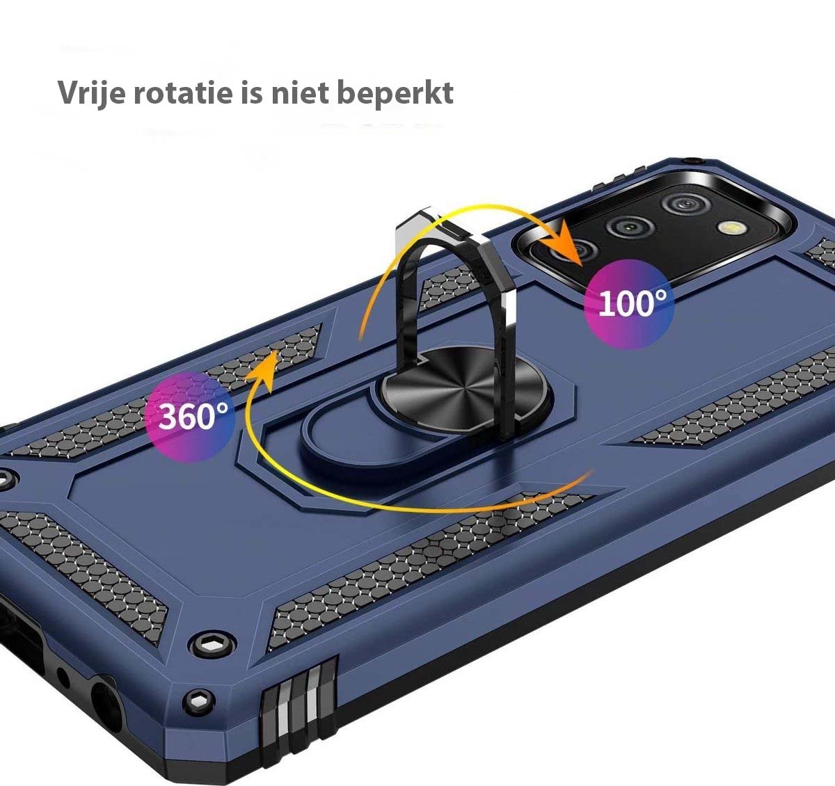 Hoesje Geschikt Voor Samsung Galaxy A02s hoesje Hybrid Armor Anti-Shock hoesje Blauw - Galaxy A02s / A02s Hoesje kickstand Ring houder cover TPU backcover hoesje