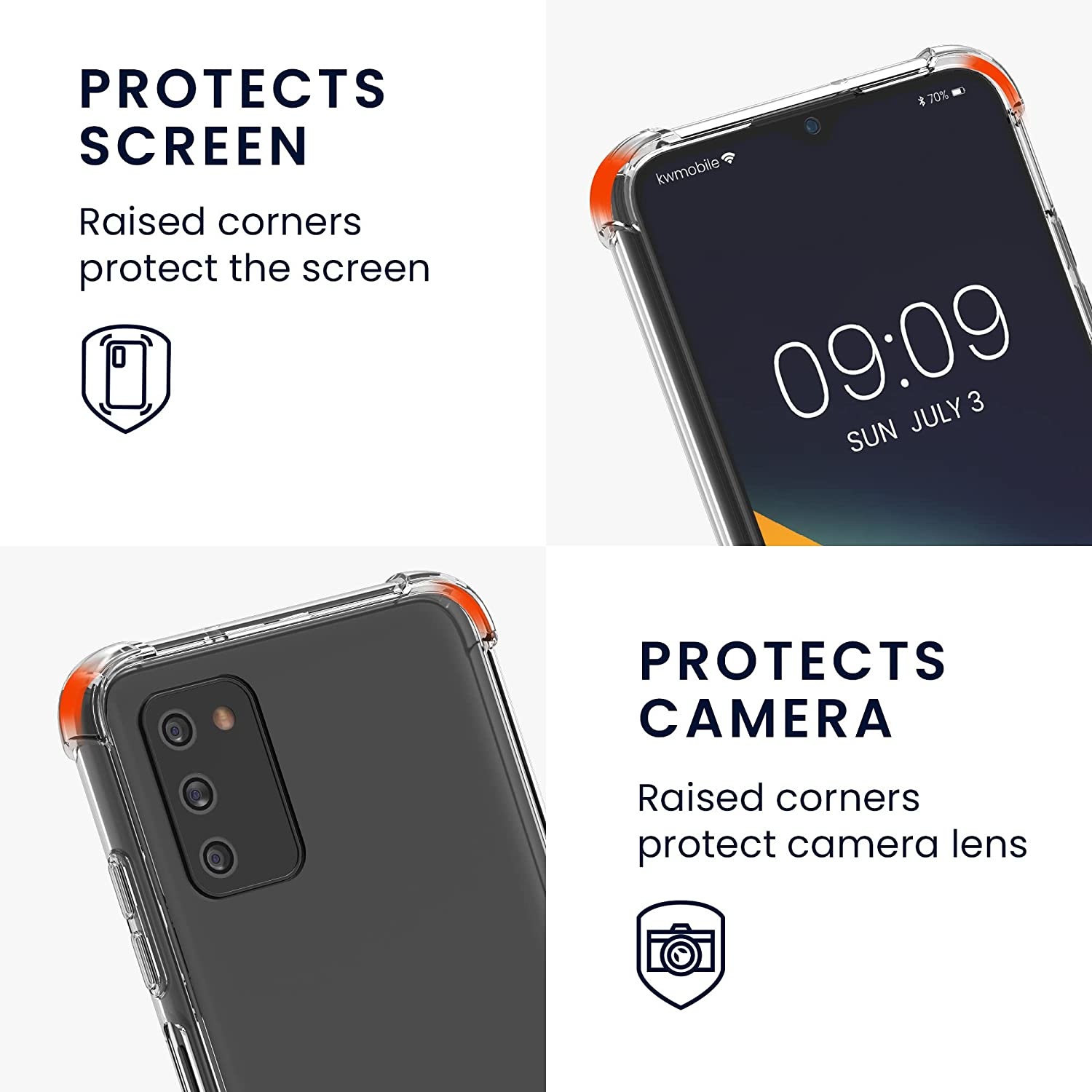 Een ander belangrijk kenmerk van deze hoes is de schokbestendigheid. Dit betekent dat de hoes jouw Samsung Galaxy A03 beschermt tegen schade bij het laten vallen van jouw apparaat. De hoes is ontworpen om schokken op te vangen en te voorkomen dat jouw telefoon beschadigd raakt. Hierdoor kunt je jouw telefoon zonder zorgen overal mee naartoe nemen.