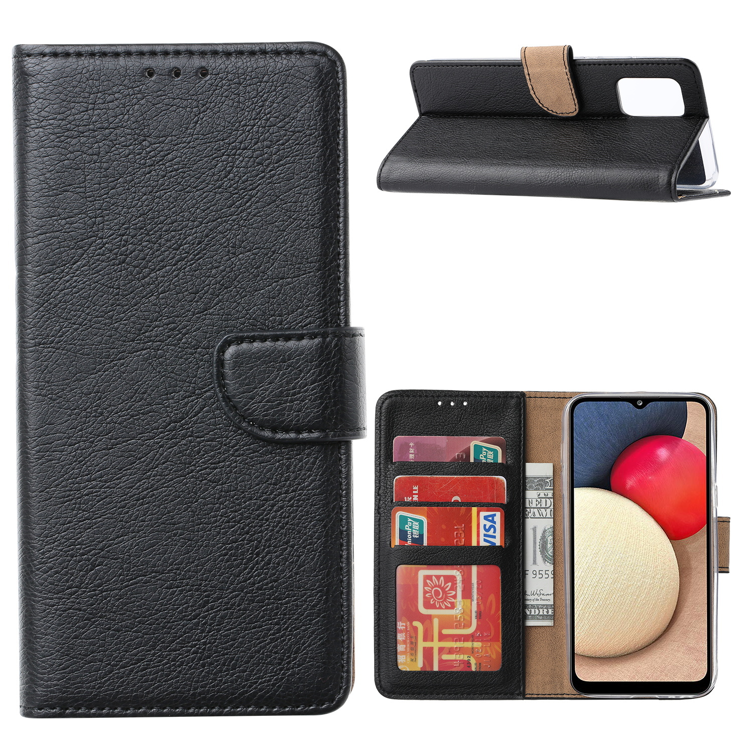 Hoesje Geschikt Voor Samsung Galaxy A03S Hoesje Zwart - Hoesje Geschikt Voor Samsung Galaxy A03S book case met Pasjeshouder - portemonee hoesje