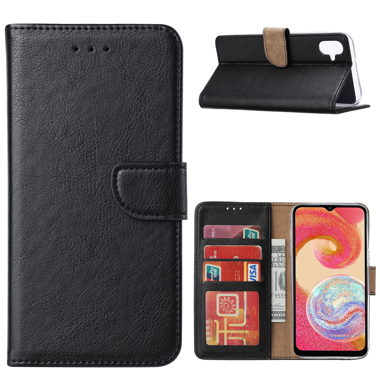 Hoesje Geschikt Voor Samsung Galaxy A04e Hoesje met Pasjeshouder – Bookcase – Zwart