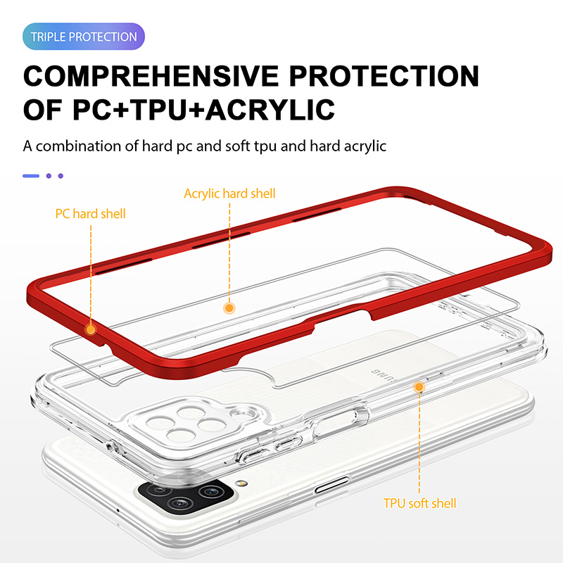 Hoesje Geschikt Voor Samsung Galaxy A12 5G hoesje Transparant backcover met bumper case – Rood – oTronica