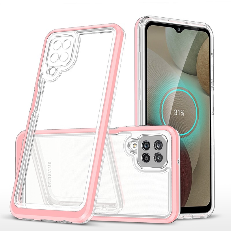 Hoesje Geschikt Voor Samsung Galaxy A12 5G hoesje Transparant backcover met bumper case – Roze – oTronica