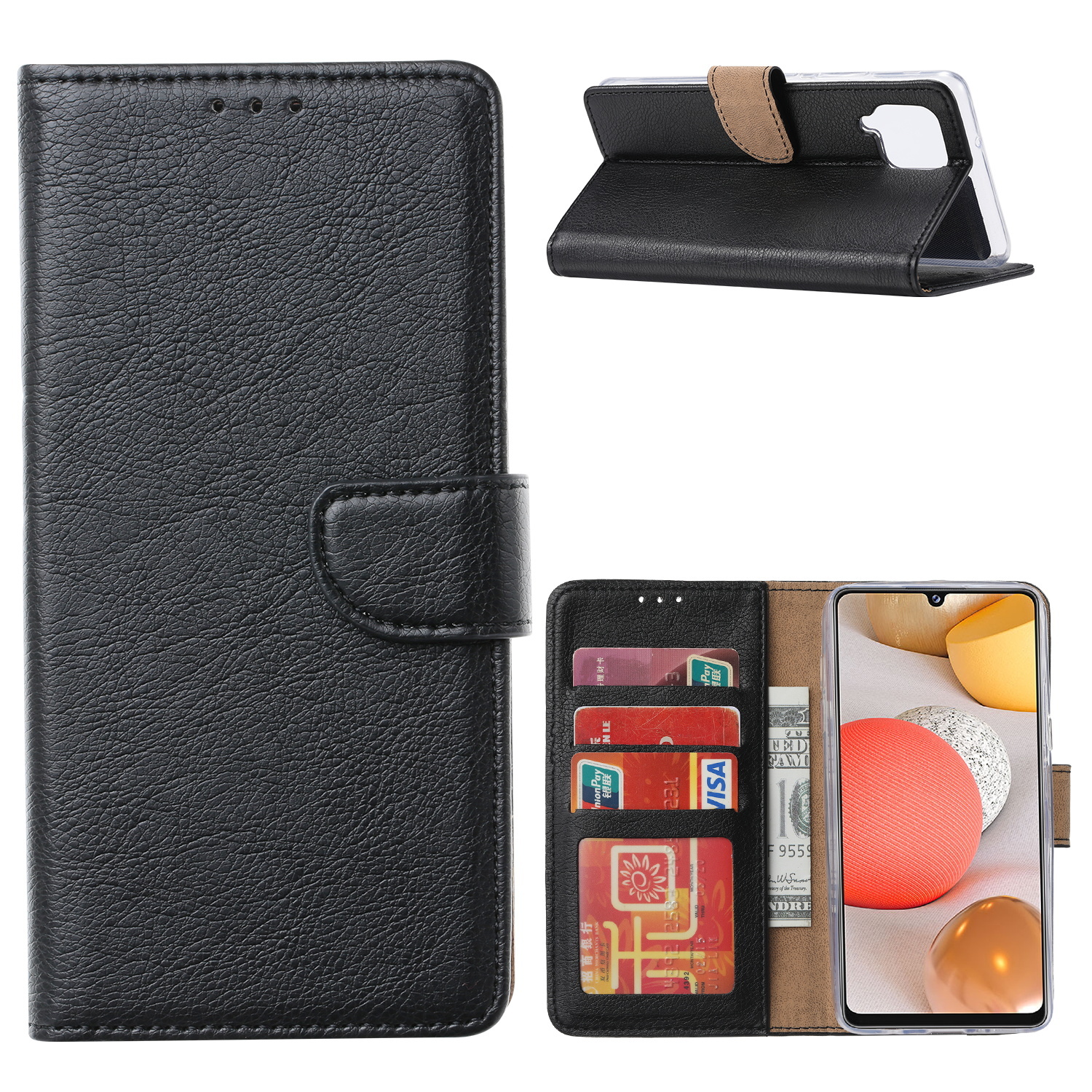 Hoesje Geschikt Voor Samsung Galaxy A12 Hoesje Geschikt Voor Samsung Galaxy A12 bookcase met Pasjeshouder - Zwart