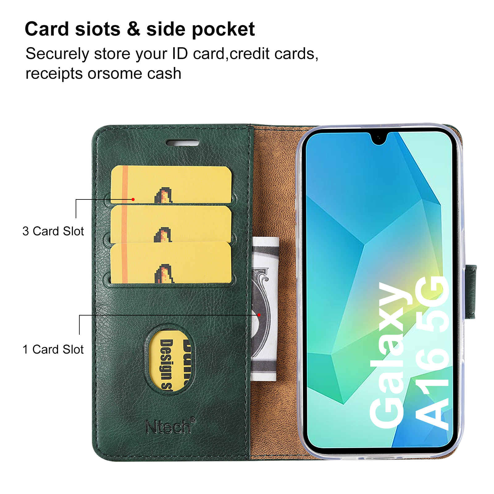 Hoesje Geschikt Voor Samsung Galaxy A16 Hoesje met Pasjeshouder – bookcase Portemonnee – Groen
