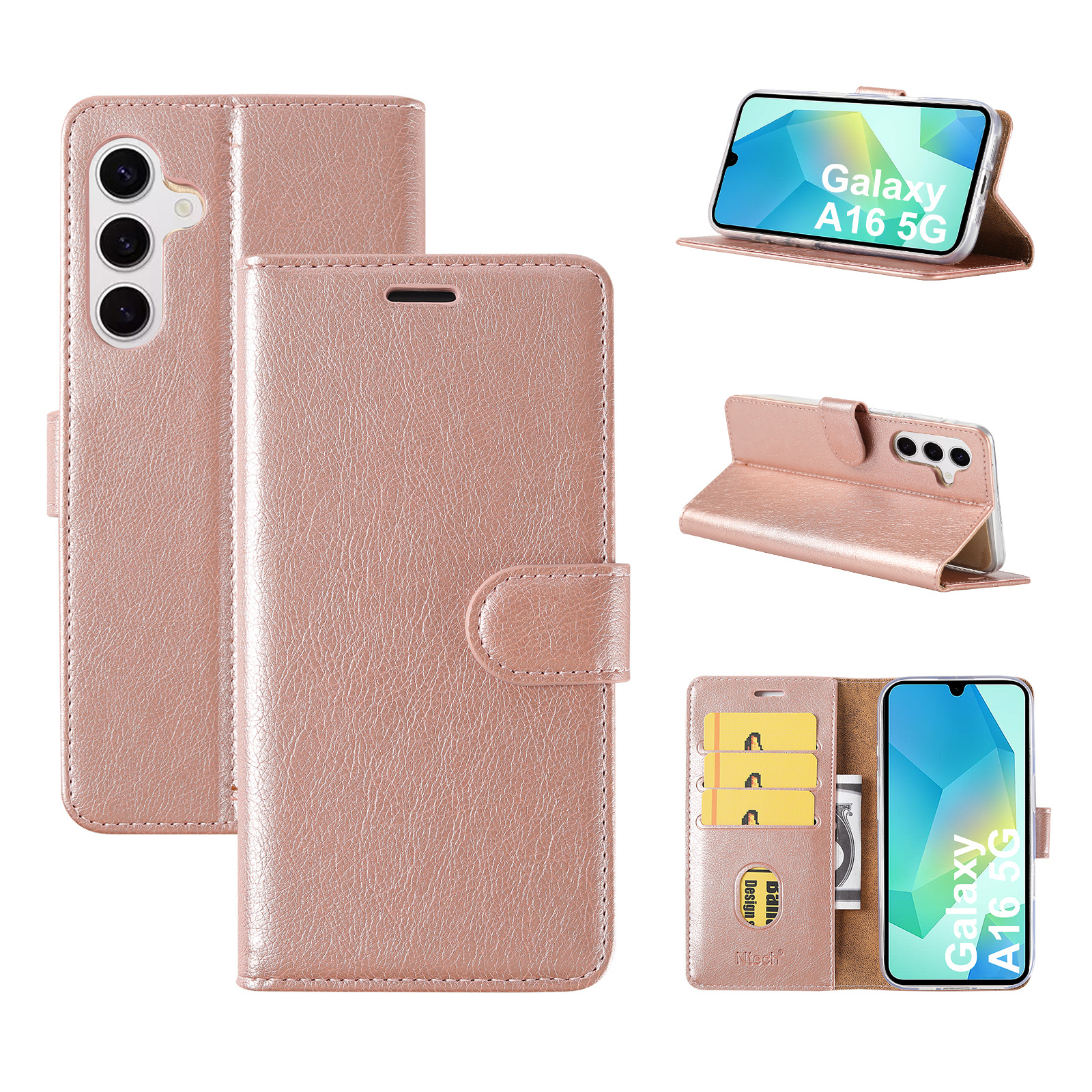 Hoesje Geschikt Voor Samsung Galaxy A16 Hoesje met Pasjeshouder – bookcase Portemonnee – Rosegoud
