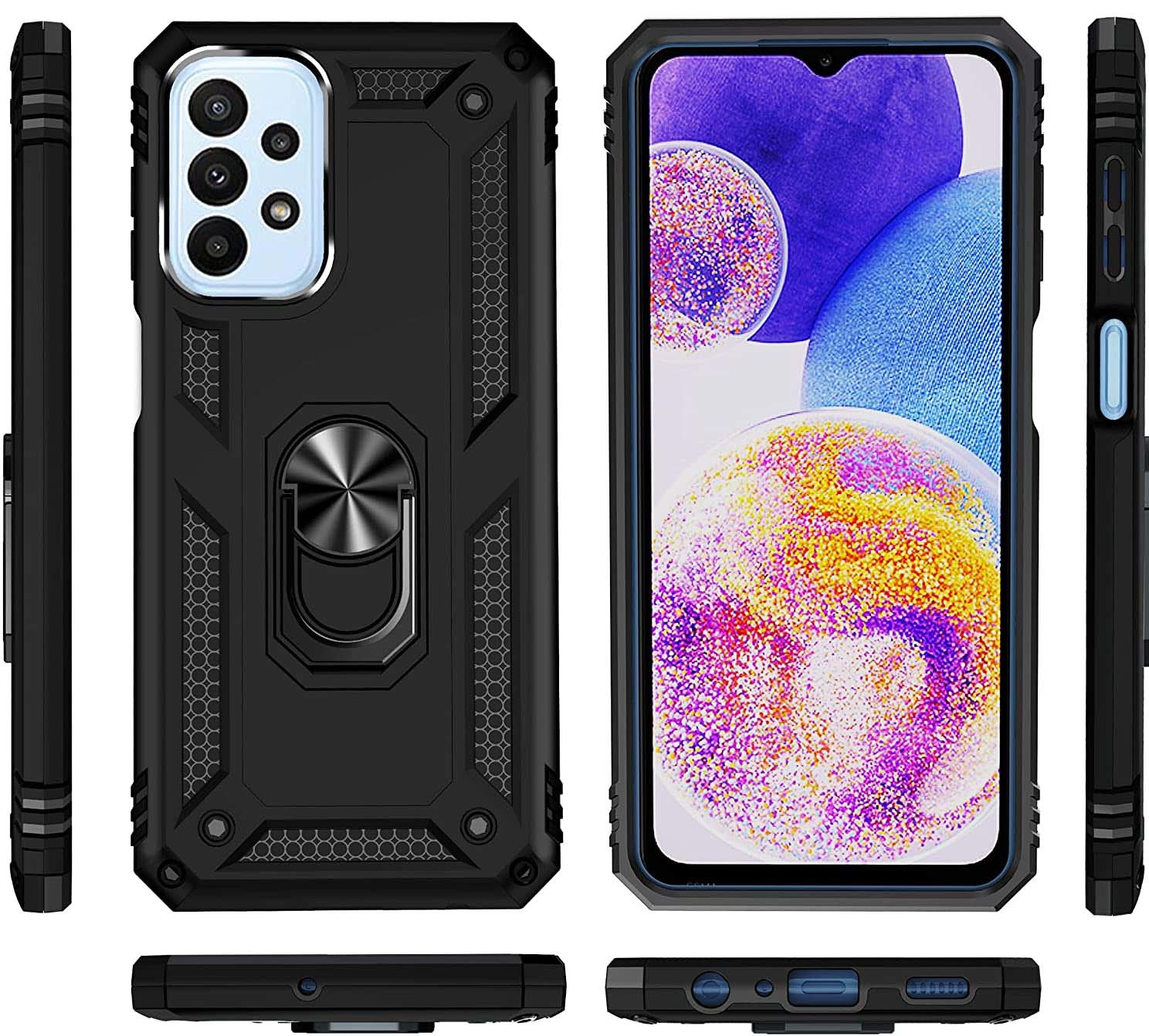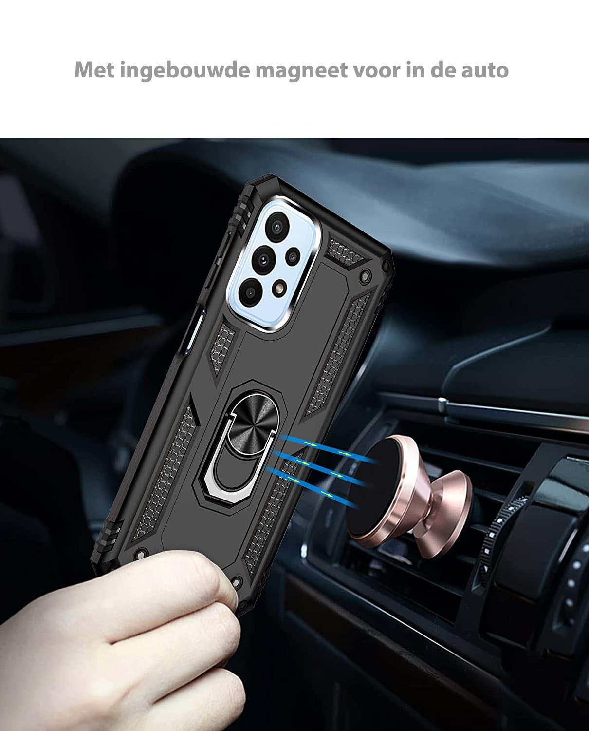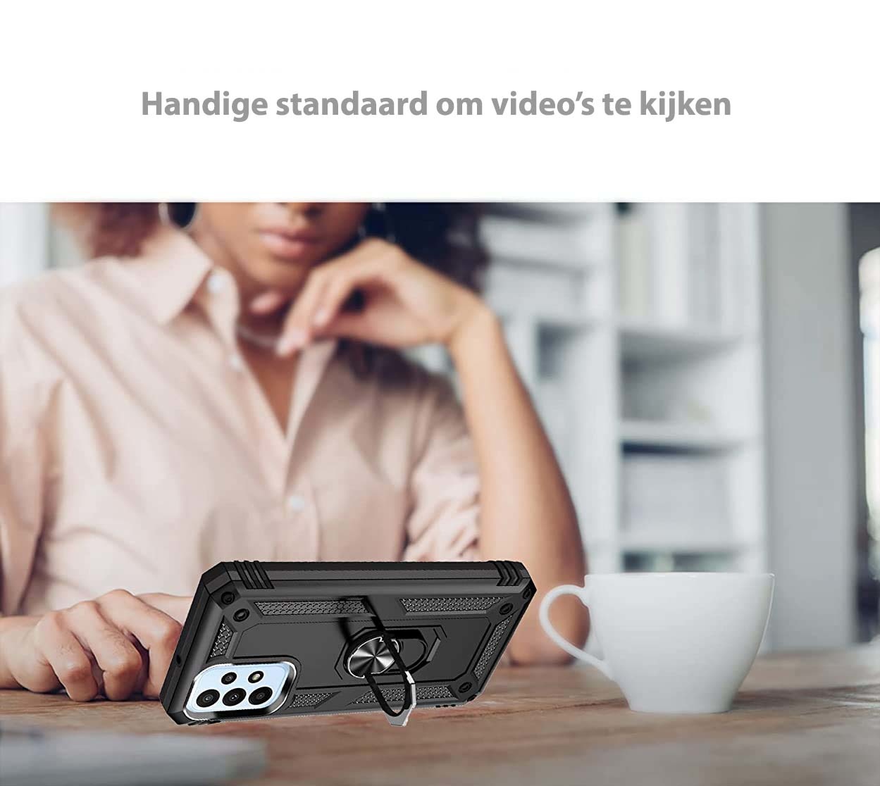 Hoesje Geschikt Voor Samsung Galaxy A23 5G Hoesje Armor Anti-shock Backcover Zwart - Galaxy A23 4G- A23 5G Backcover kickstand Ring houder cover TPU backcover oTronica