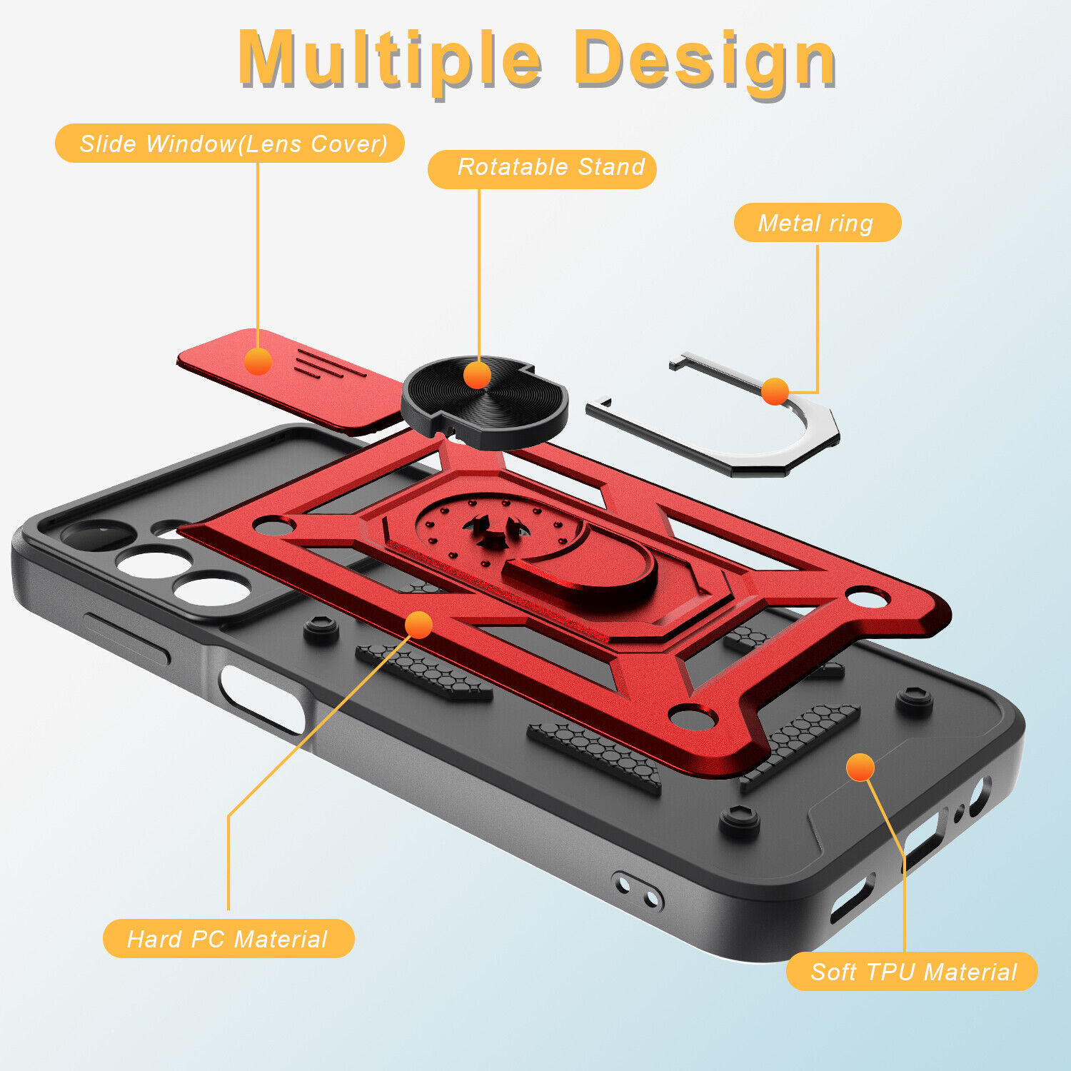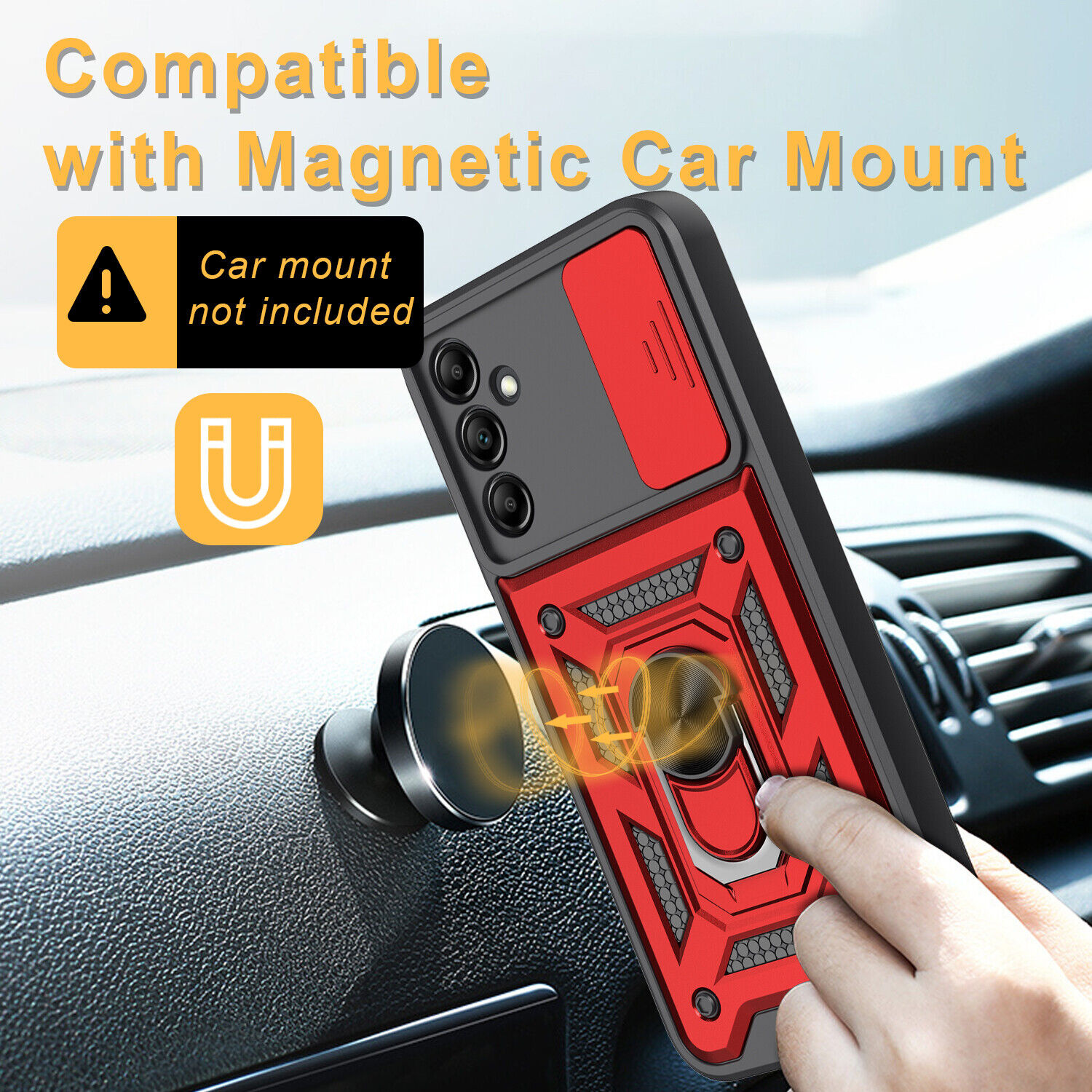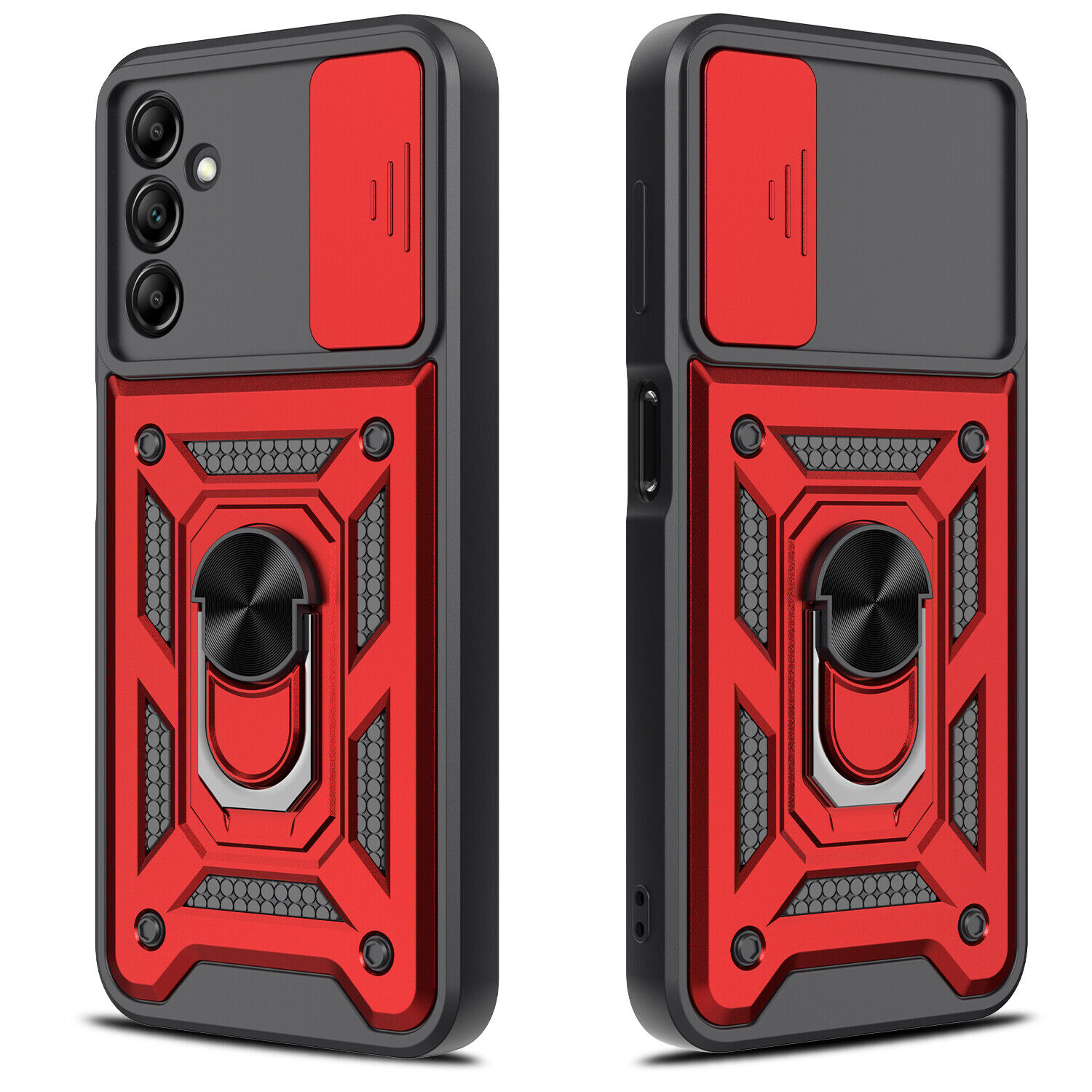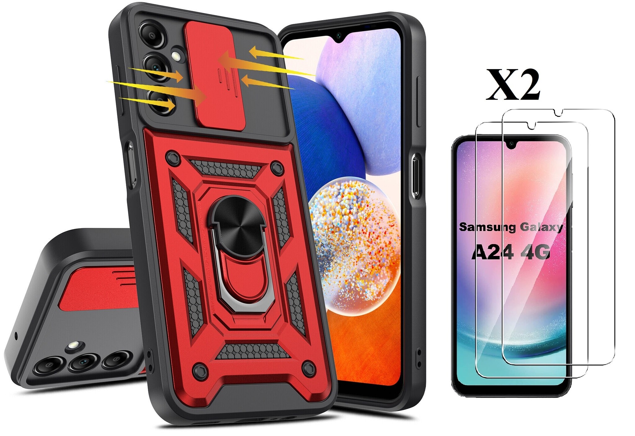 Hoesje Geschikt Voor Samsung Galaxy A24 hoesje Rood met Ring Houder en camera bescherming - Galaxy A24 Screenprotector - 2 stuks