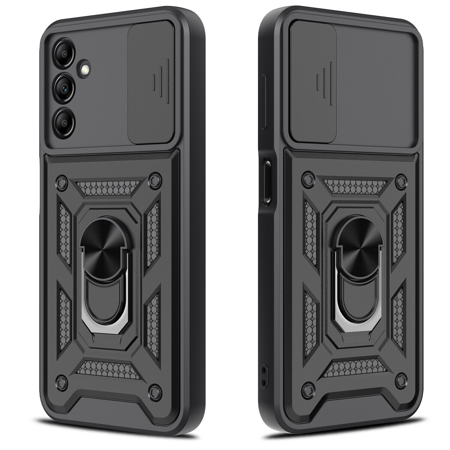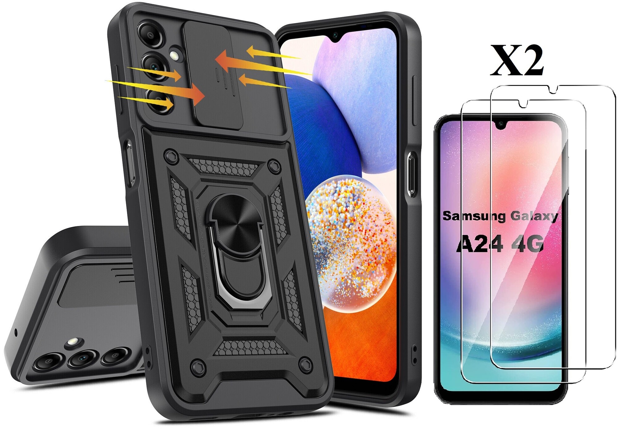 Hoesje Geschikt Voor Samsung Galaxy A24 hoesje Zwart met Ring Houder en camera bescherming - Galaxy A24 Screenprotector - 2 stuks