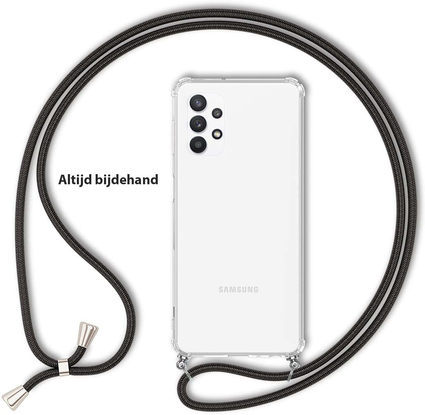 Hoesje Geschikt Voor Samsung Galaxy A32 4G hoesje met koord transparant Siliconen Zwart – A32 4G backcover – Hoesje Geschikt Voor Samsung Galaxy A32 4G case – oTronica koord hoesje Hoesje Geschikt Voor Samsung Galaxy