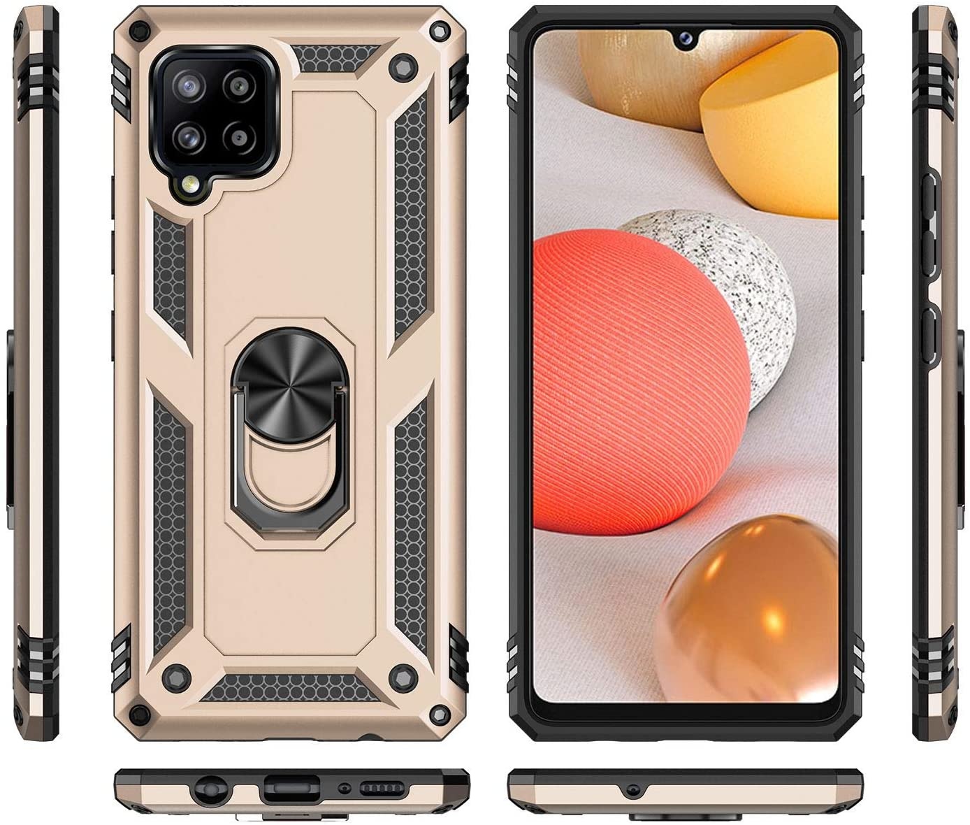 Hoesje Geschikt Voor Samsung Galaxy A42 5G Hoesje Armor case Ringhouder TPU cover - Goud met 2 pack screenprotector