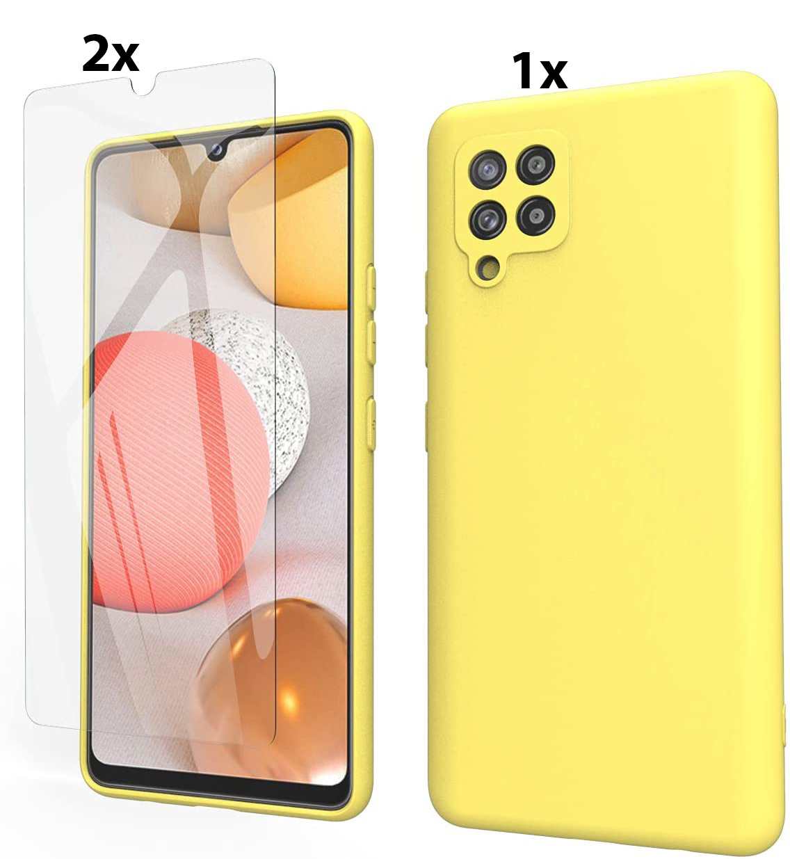 Hoesje Geschikt Voor Samsung Galaxy A42 5G Hoesje Soft Nano Silicone Backcover Gel Geel Met 2x Glazen Screenprotector