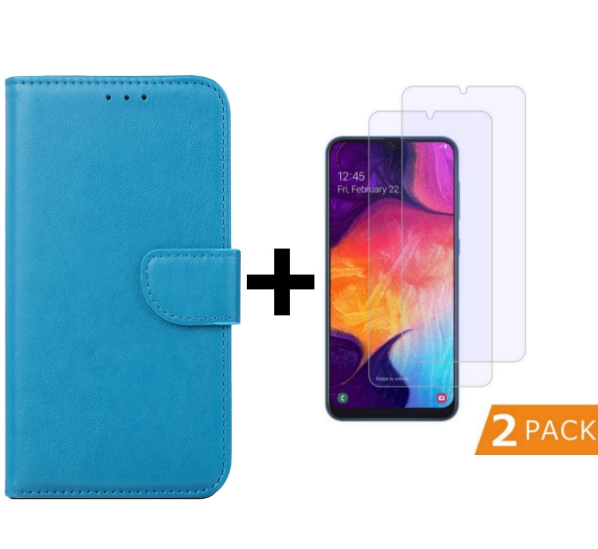 Hoesje Geschikt Voor Samsung Galaxy A50s/A30s Portemonnee hoesje - Turquoise Met 2 stuks Glazen screenprotector
