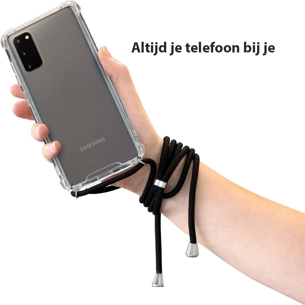 Hoesje Geschikt Voor Samsung Galaxy A51 hoesje met koord transparant Siliconen Zwart – A51 backcover – Hoesje Geschikt Voor Samsung Galaxy A51 case – oTronica koord hoesje Hoesje Geschikt Voor Samsung Galaxy