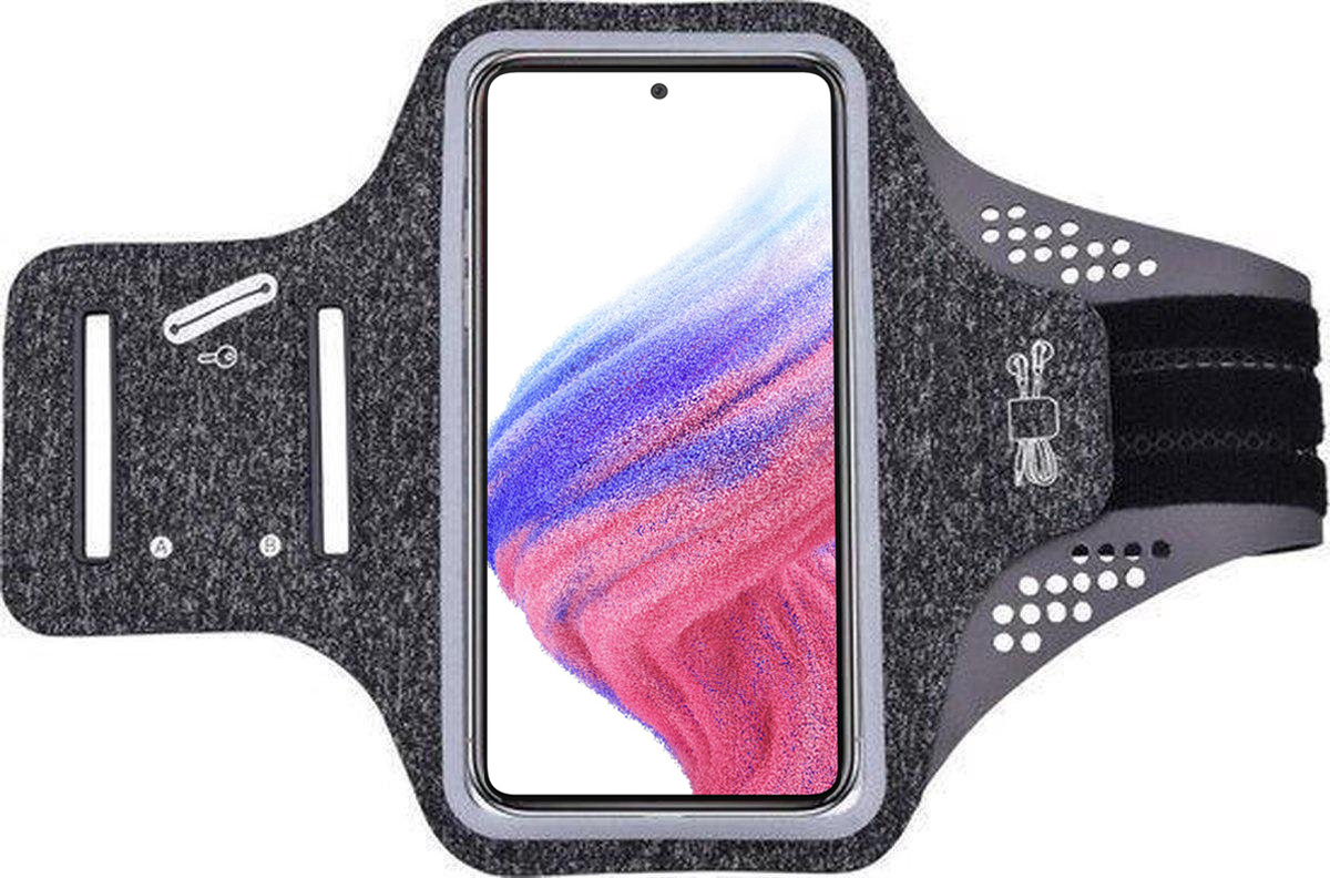 Hoesje Geschikt voor Samsung Galaxy A53 hardloop telefoonhouder – armband - sportband - van stof - Zwart