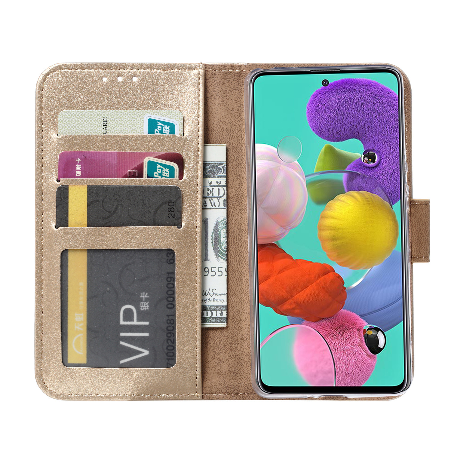 Hoesje Geschikt Voor Samsung Galaxy A71 Portemonnee hoesje + 2X Screenprotector - Goud