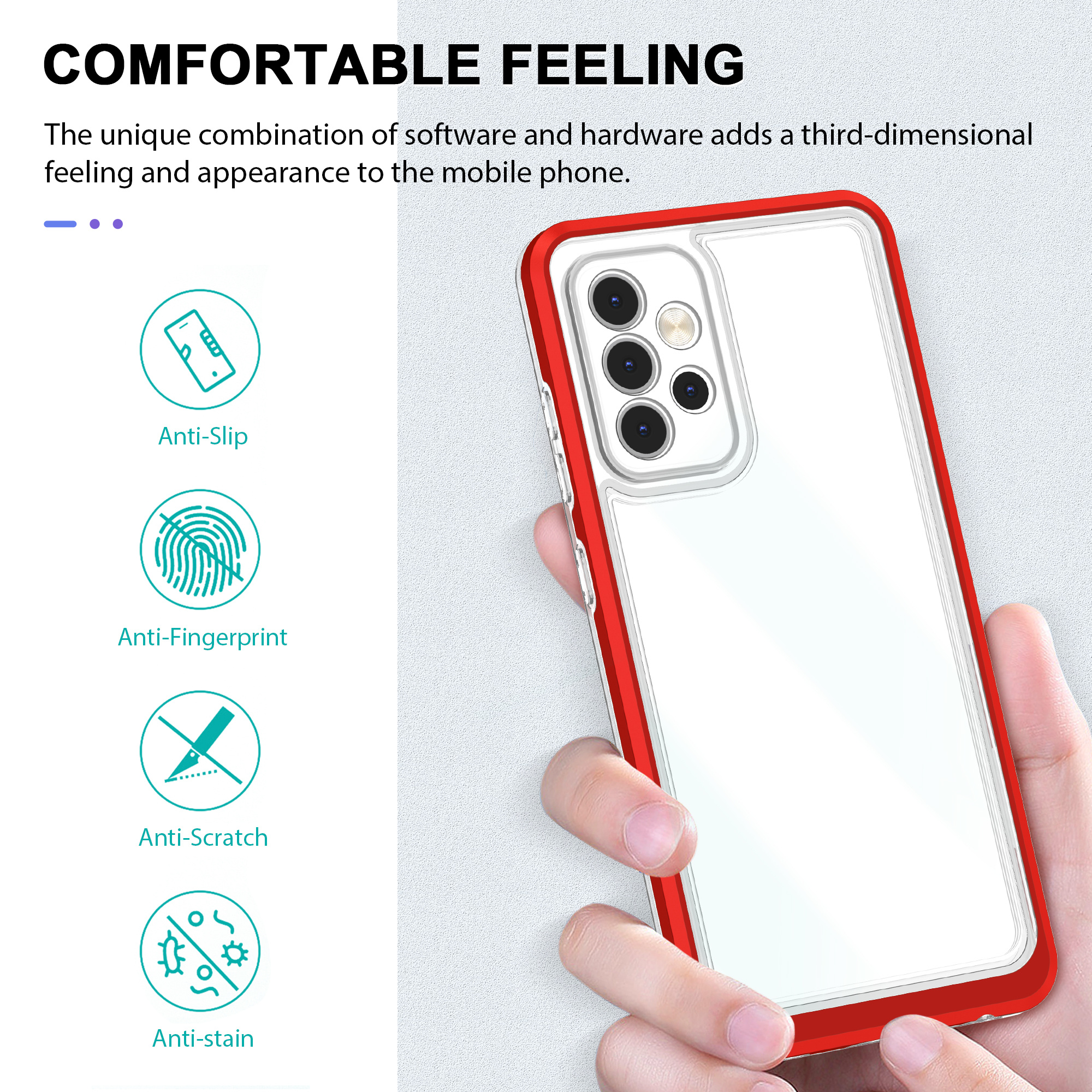 Door de transparante achterkant is het mooi design van je toestel zichtbaar en het logo herkenbaar. Naast het mooi design van het hoesje is je Samsung GalaxyA72 4G/5G ook heel praktisch en heb je er goede grip op.