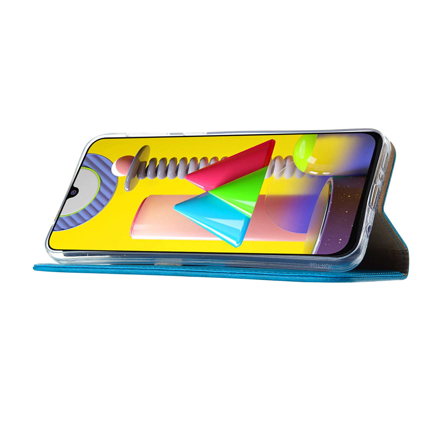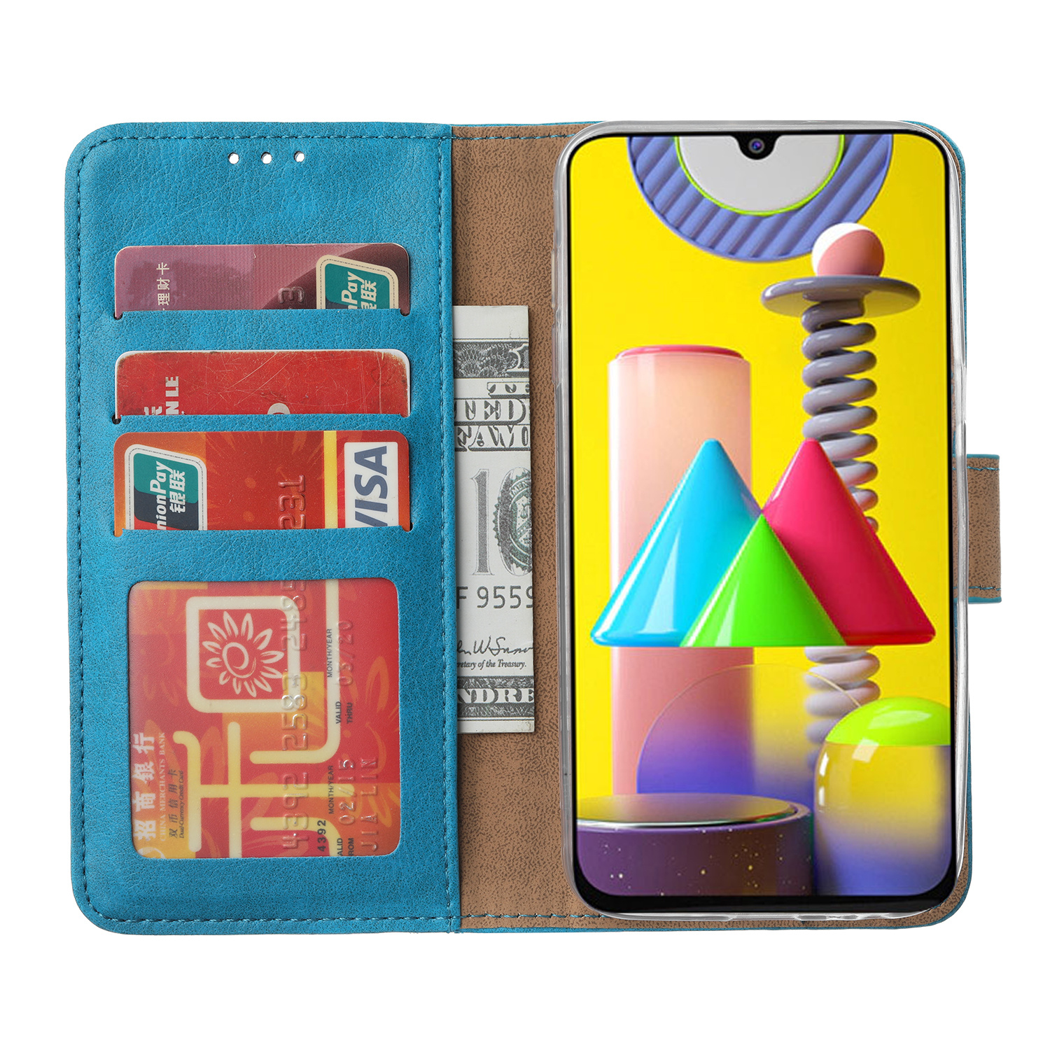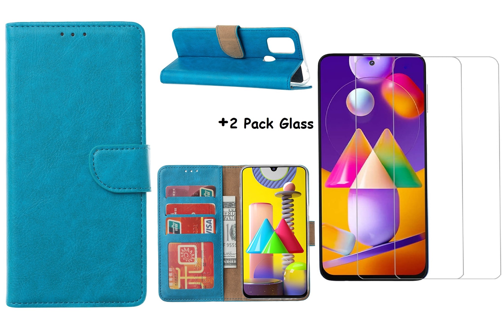 Hoesje Geschikt Voor Samsung Galaxy M31S Boek Hoesje / Wallet cover - Blauw Met 2X glas Screenprotector